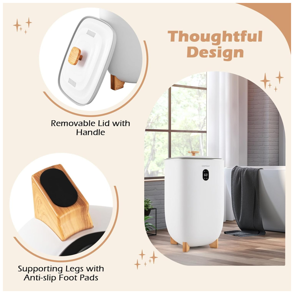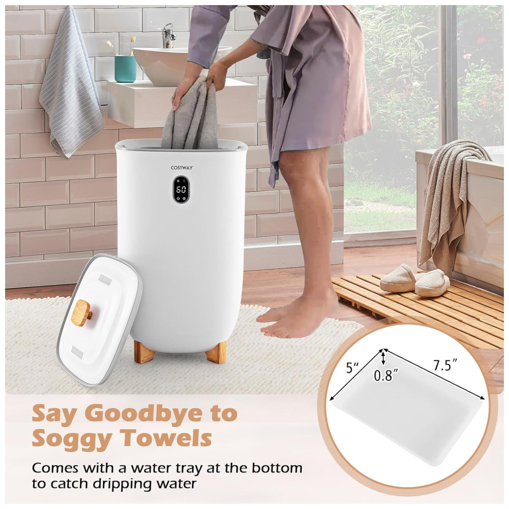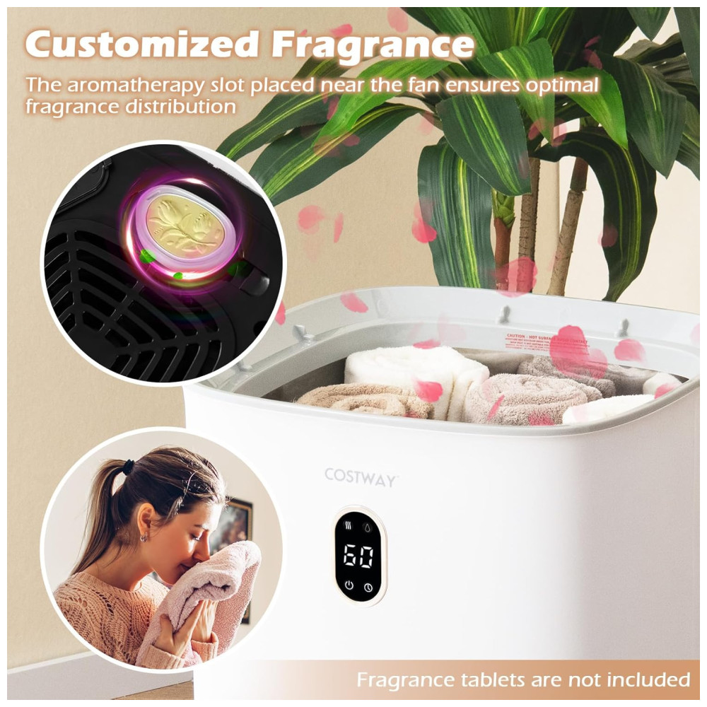 Aquecedor e Secador de Toalha Elétrico 35L com Desligamento Automático Temporizador Ajustável e Suporte para Disco Perfumado 110V COSTWAY 00018-CYES Branco