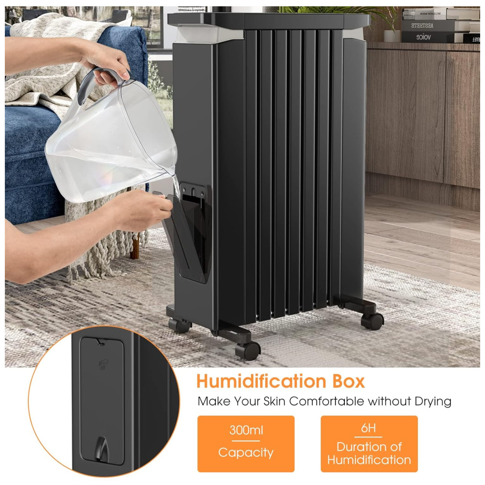Aquecedor Elétrico a Óleo com 3 Modos Caixa de Umidificação e Economia de Energia 1500W 110V COSTWAY Preto