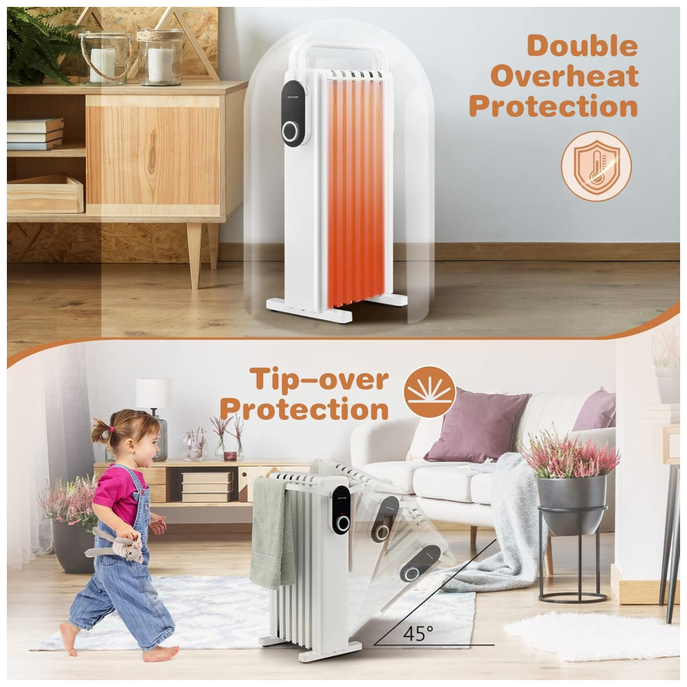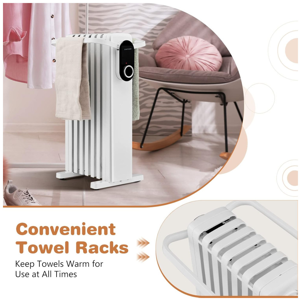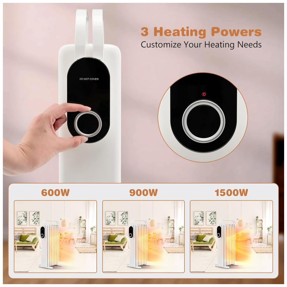 Apresentando o Aquecedor de Radiador a Óleo GOFLAME 1500W, um aquecedor elétrico portátil que oferece calor personalizado com 3 potências de aquecimento (750W/900W/1500W), permitindo que você ajuste o calor conforme suas necessidades. Além disso, você pode pendurar toalhas nos convenientes suportes para mantê-las aquecidas e prontas para uso o tempo todo.