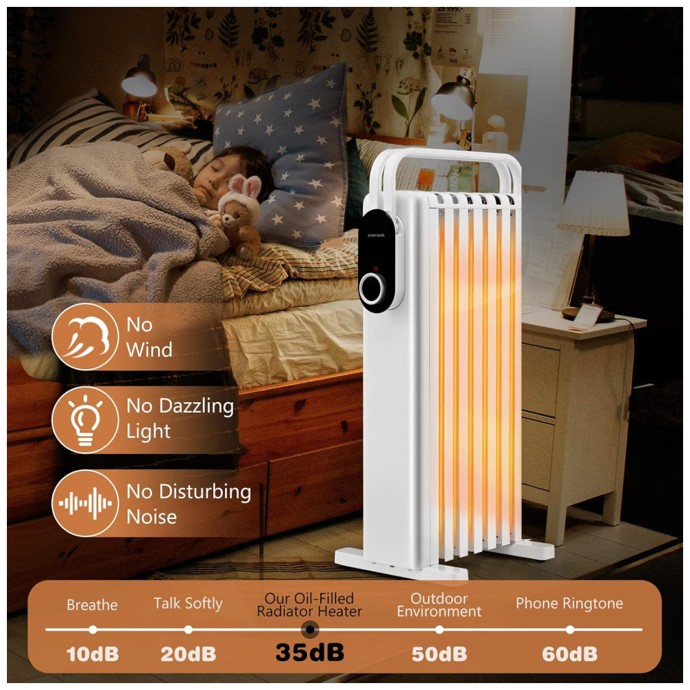 Desfrute de um aquecimento acolhedor e silencioso com este aquecedor de radiador elétrico, que elimina vento, luzes intensas e ruídos perturbadores, criando um ambiente tranquilo ideal para se concentrar no trabalho ou ter uma boa noite de sono.
