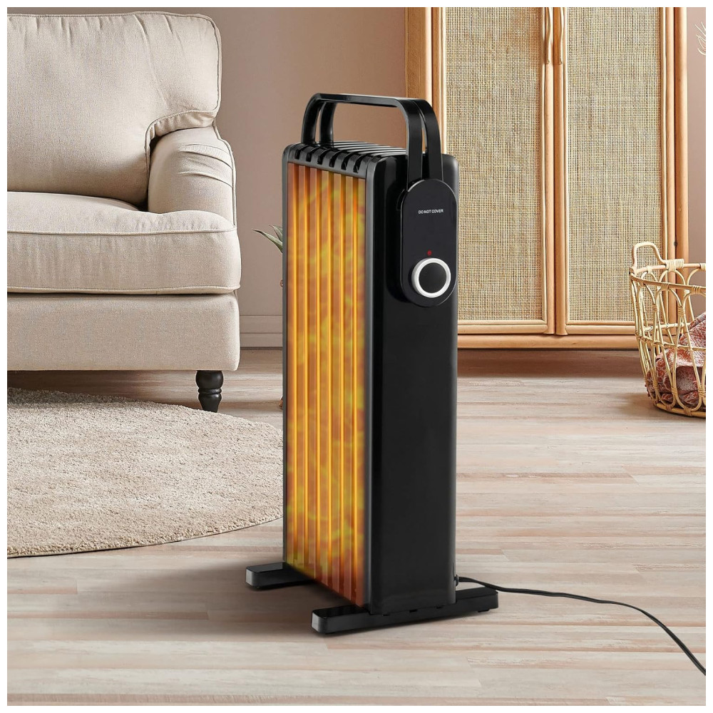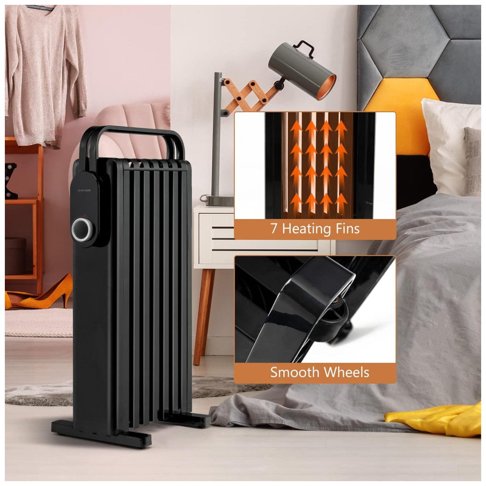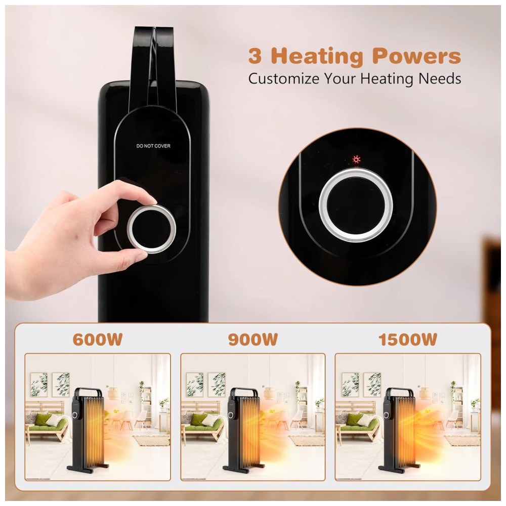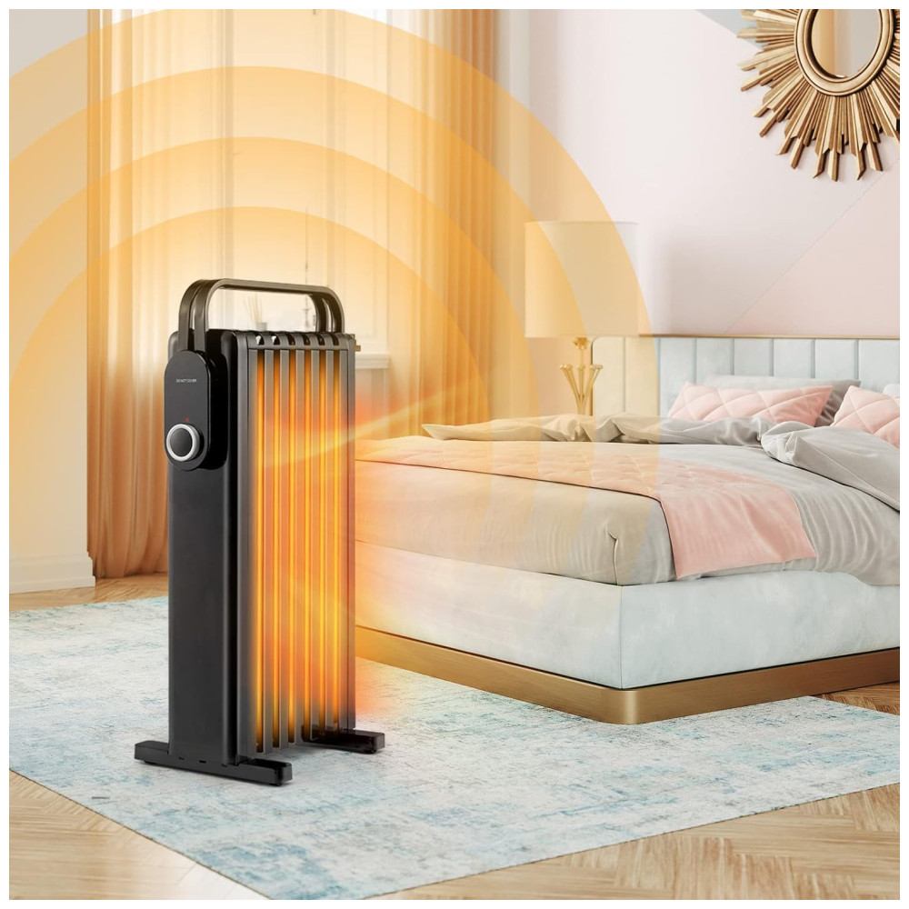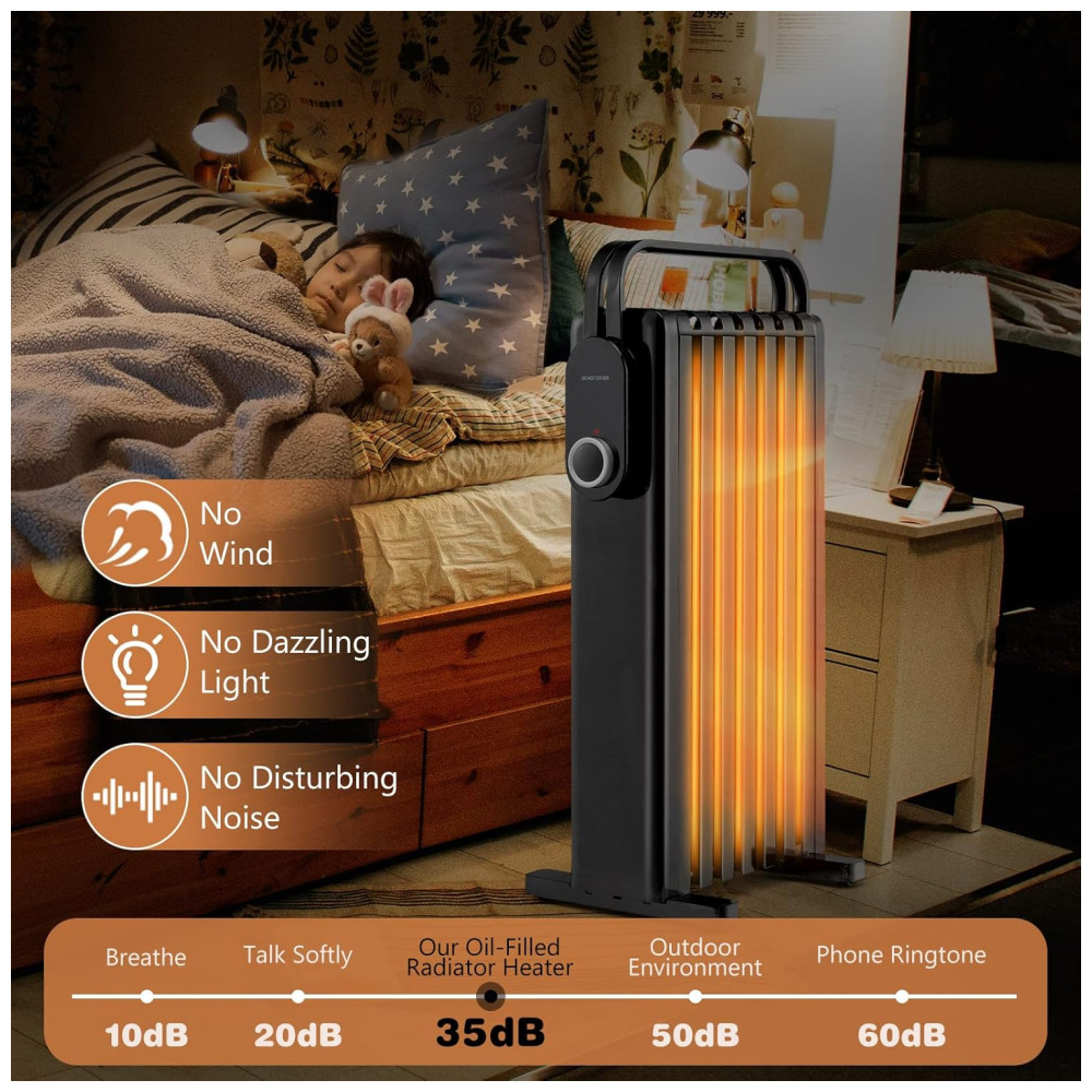 Com eficiência de aquecimento otimizada, este aquecedor elétrico possui tubos de aquecimento duplos em forma de U, um reservatório de óleo selado permanentemente e 7 aletas de aquecimento, oferecendo um efeito de aquecimento 1,5 vezes maior do que os modelos comuns.