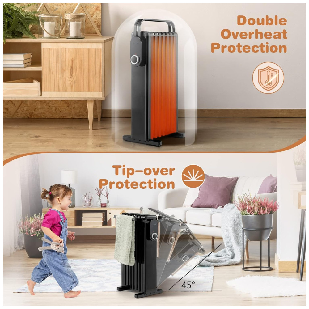 Descubra o Aquecedor de Ambiente a Óleo GOFLAME 1500W, um Aquecedor Elétrico Portátil que proporciona calor personalizado com 3 potências (750/900W/1500W), permitindo que você escolha o calor desejado para atender às suas necessidades de aquecimento. Você também pode pendurar toalhas nos práticos suportes para mantê-las aquecidas para uso a qualquer momento.