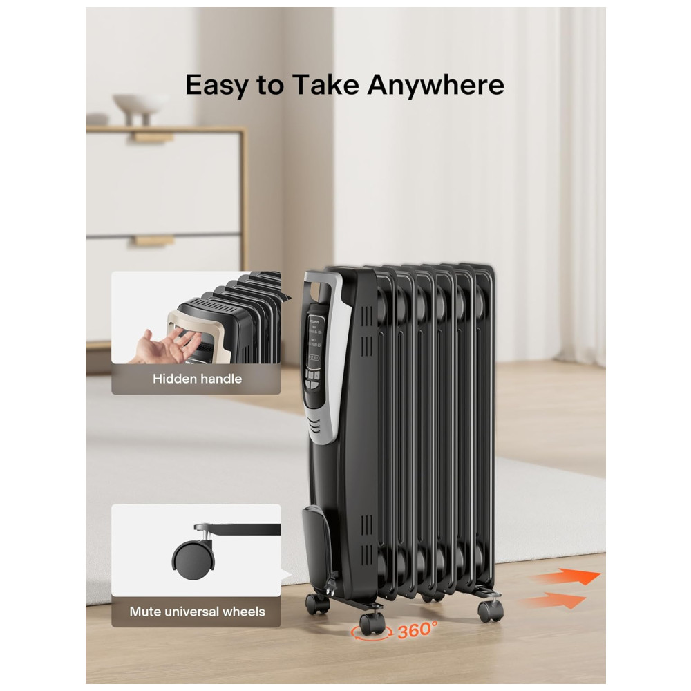 Operação Silenciosa: Desfrute de um ambiente tranquilo enquanto mantém seu espaço aquecido e aconchegante, sem os ruídos irritantes que perturbam o sono, trabalho, meditação ou qualquer atividade que necessite de paz. O aquecedor oferece calor suave e duradouro, utilizando um meio condutor de calor a óleo.