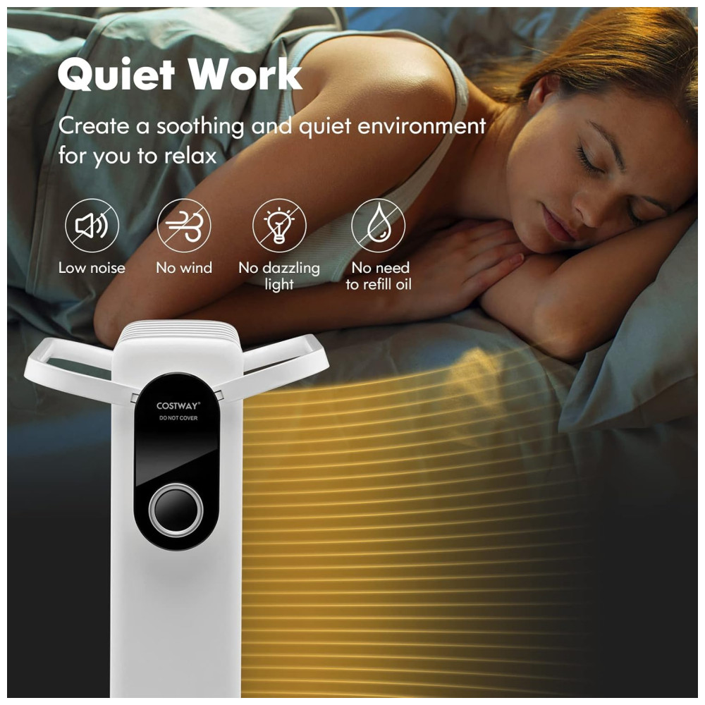 Economia de Energia e Funcionamento Silencioso: O aquecedor elétrico cria uma atmosfera aconchegante e quente para você relaxar, sem emitir sons perturbadores. Não há vento ou luz ofuscante durante a operação, permitindo que você durma tranquilamente. Além disso, o aquecedor é projetado com um reservatório de óleo permanentemente selado, eliminando a necessidade de reabastecimento de óleo, o que é bastante econômico.