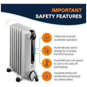 Aquecedor Elétrico a Óleo com Temporizador Digital e 3 Configurações de Calor 110V 1500W DELONGHI TRRS0715E Cinza Claro
