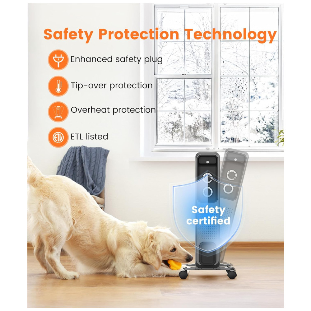 Proteção contra Tombamento e Superaquecimento: O aquecedor Joy Pebble é extremamente seguro, com proteção contra tombamento e superaquecimento, além de usar um plugue com cabeça de aquecimento reforçada. Certificado pela UL e ETL, oferece total tranquilidade.