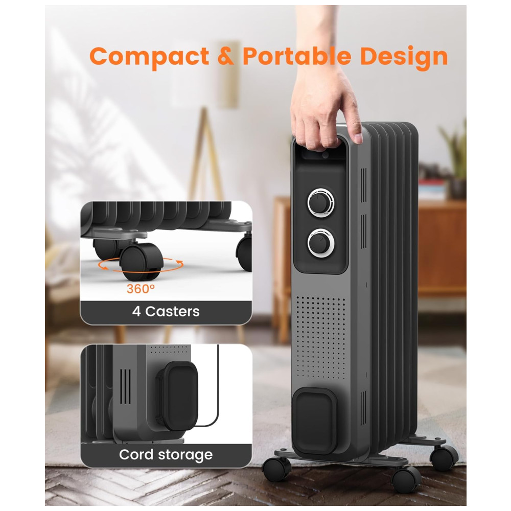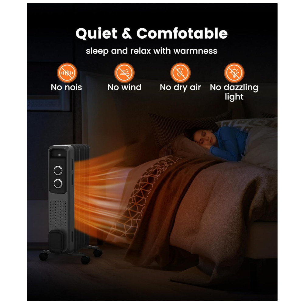 Aquecimento Rápido e Eficiente em 3 Níveis: O aquecedor a óleo Joy Pebble pode alcançar 1200W de potência, proporcionando um aquecimento rápido e eficiente. Com três níveis de potência – 500W, 700W e 1200W – ele atende às suas diferentes necessidades de temperatura, garantindo que você não sinta frio neste inverno.