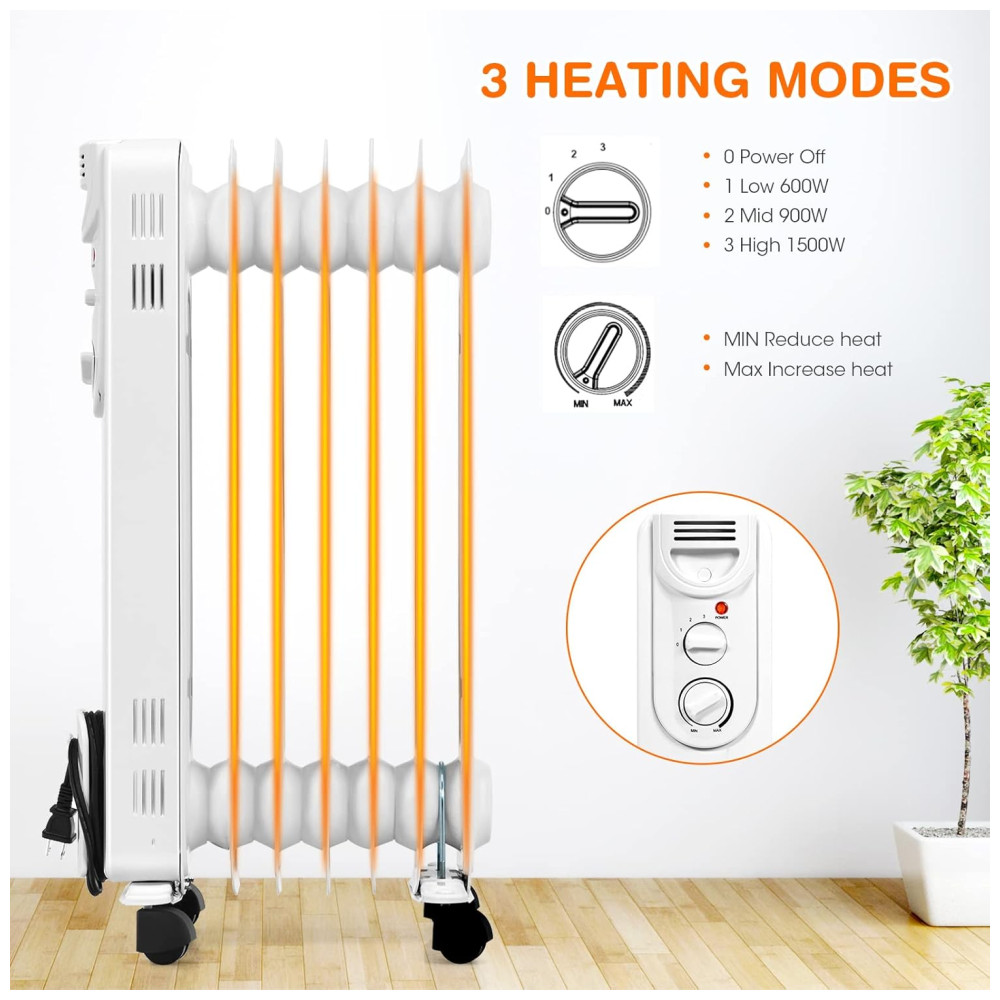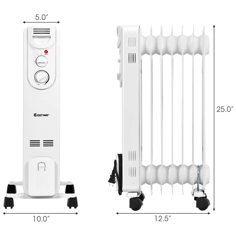 Aquecedor Elétrico a Óleo Portátil com 3 Opções de Aquecimento Proteção Contra Superaquecimento e Tombamento 110V 1500W COSTWAY Branco