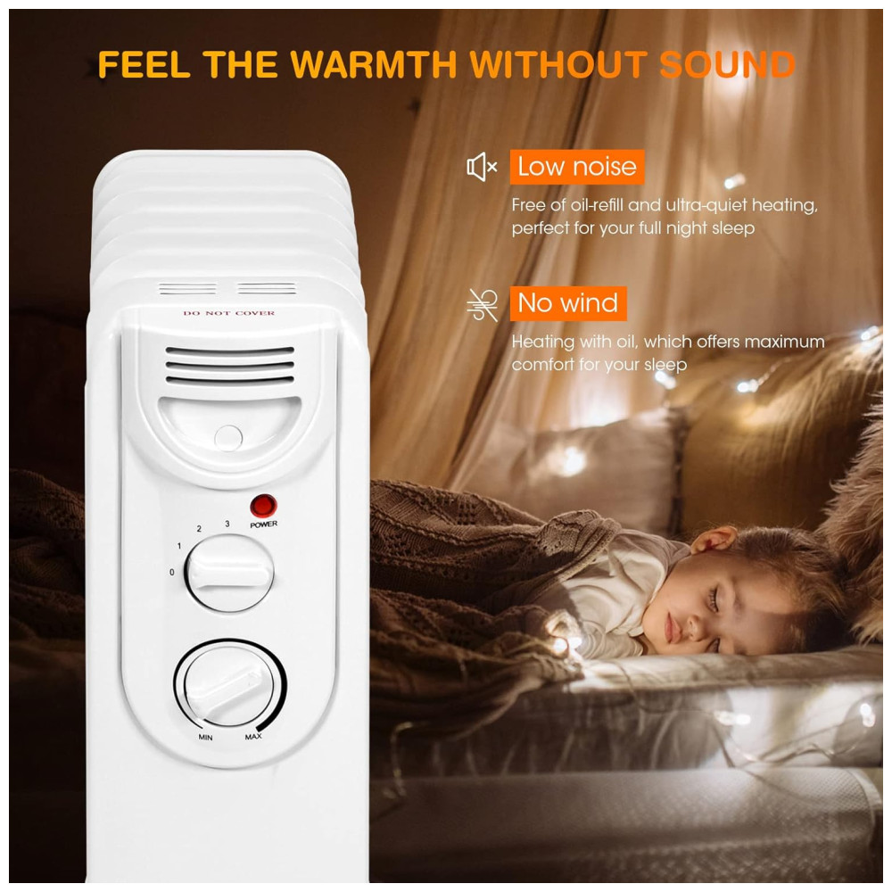 Ambiente de Aquecimento Aconchegante: Nosso aquecedor a óleo funciona sem qualquer ruído, vento ou luz, não perturbando seu sono ou relaxamento. O processo de aquecimento é livre de poeira ou fumaça, criando um ambiente tranquilo e limpo. Além disso, o sistema de óleo é permanentemente selado, garantindo calor constante para você.