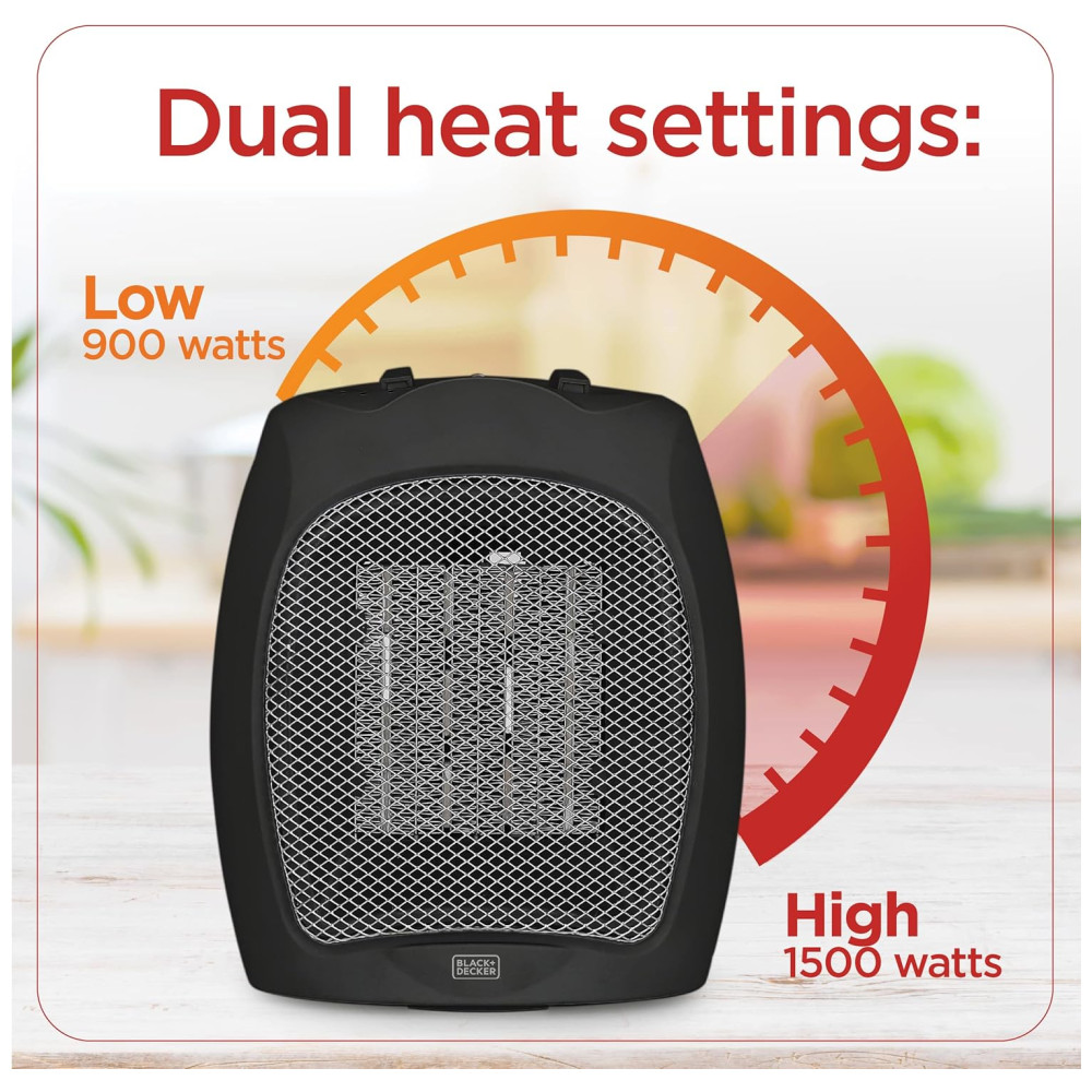 3 Configurações: Este fantástico aquecedor possui três ajustes: Ventilador, Baixo (900 Watts) e Alto (1500 Watts). Nosso aquecedor radiante (1,25 kg) permite que você escolha a temperatura do ambiente com o toque de um botão.