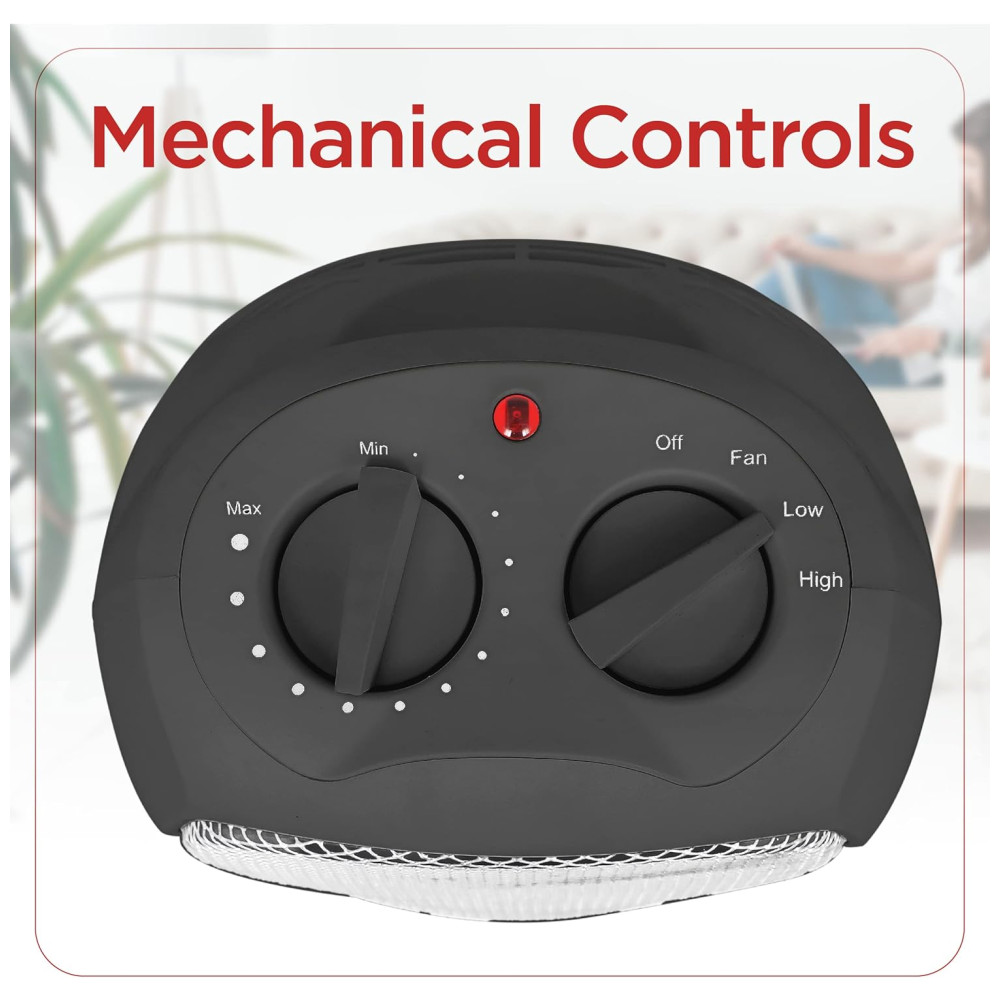 Recursos Impressionantes: Além de todas essas capacidades, este mini aquecedor para mesa de escritório também possui um termostato ajustável manualmente para controle de temperatura, além de uma luz indicadora de energia ligada.