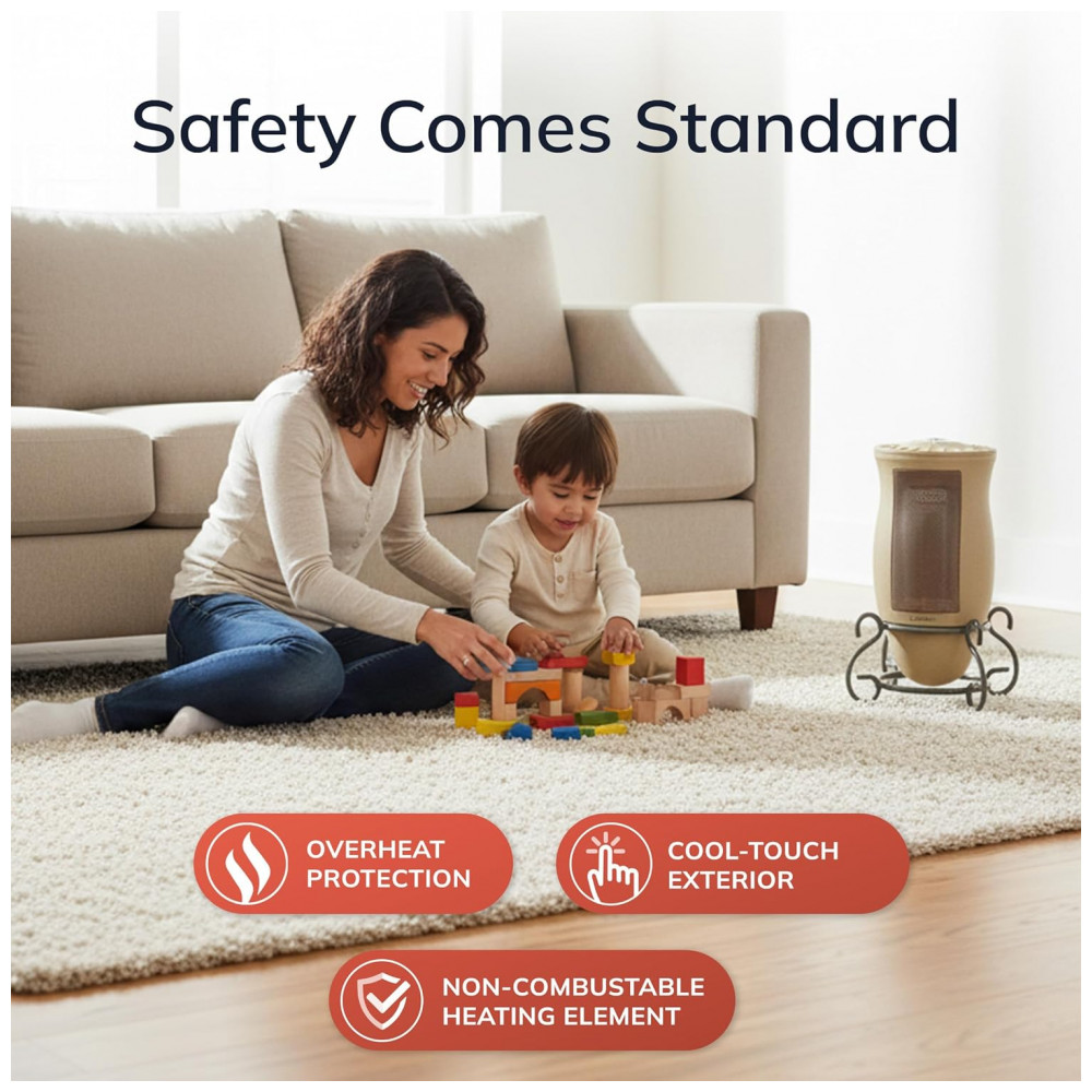 Recursos de Segurança Integrados: A proteção contra superaquecimento garante que o aquecedor não superaqueça, mesmo se deixado ligado por um longo período de tempo. Enquanto isso, o exterior de toque frio mantém o aquecedor frio ao toque, mesmo após horas de funcionamento.