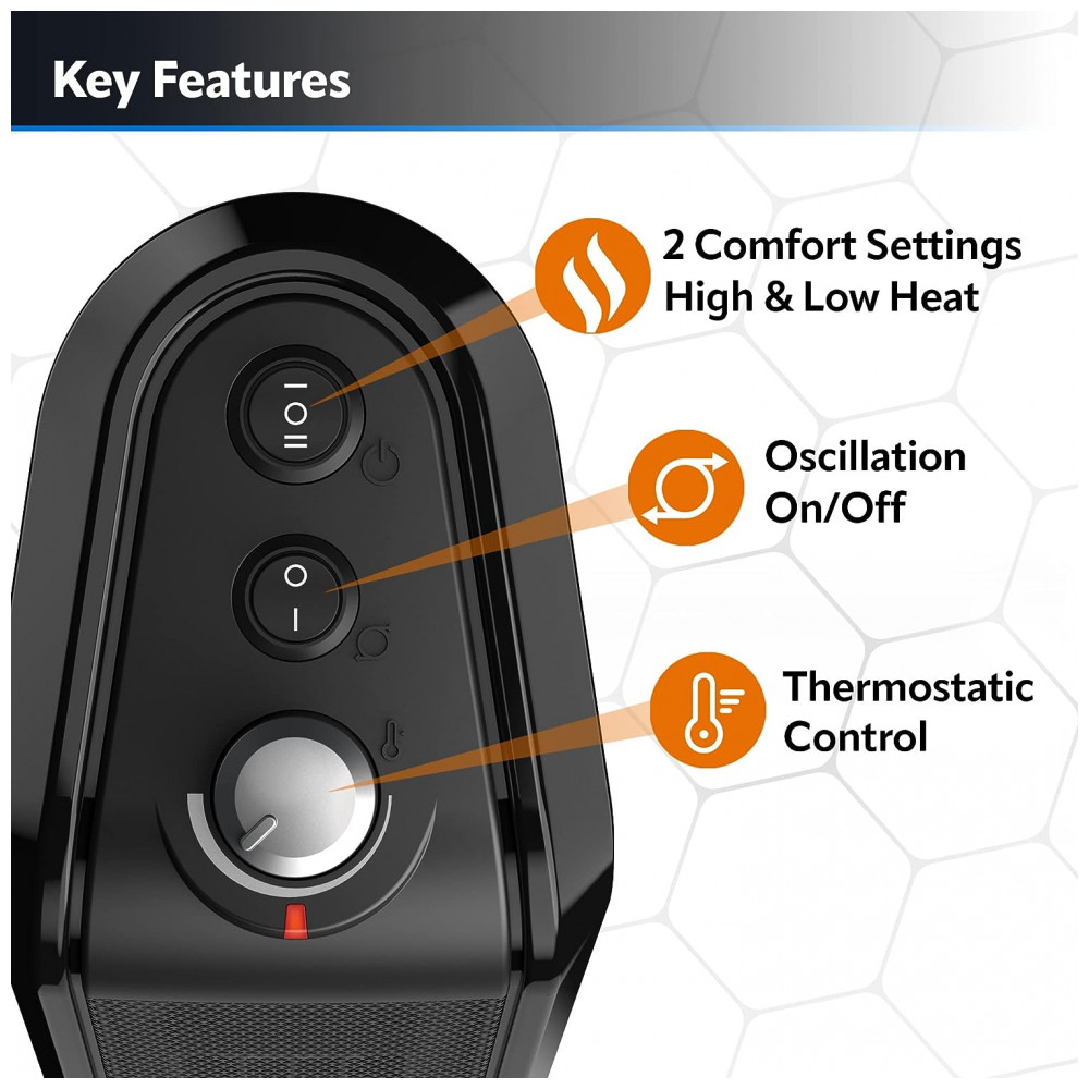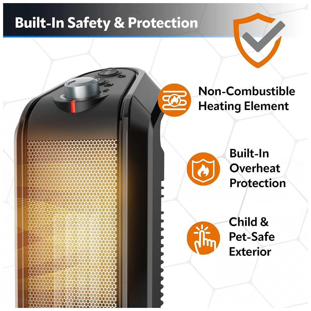 Mantém você bem aquecido: Com 39,9 cm de altura, 15,2 cm de comprimento e 12,7 cm de largura, este aquecedor se encaixa facilmente em uma mesa, bancada ou criado-mudo e é ideal para aquecer o quarto, escritório doméstico, cozinha ou qualquer lugar onde se deseja economizar nos custos de aquecimento da casa inteira. O termostato manual permite que você controle o nível de conforto desejado.