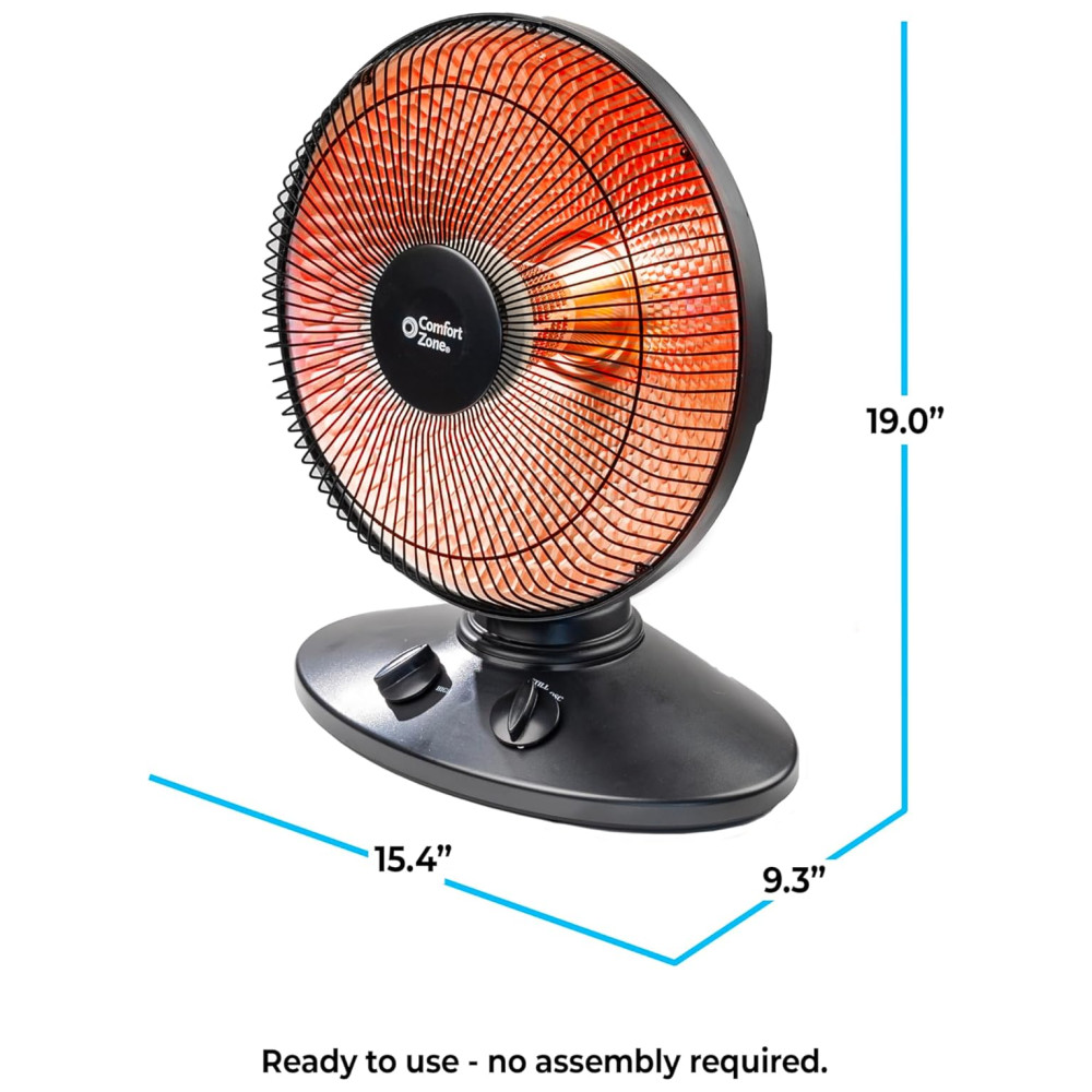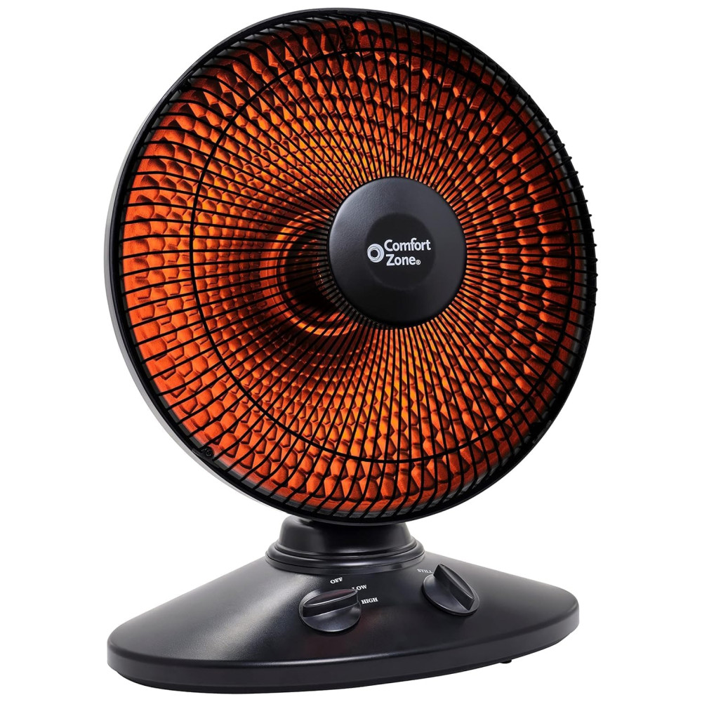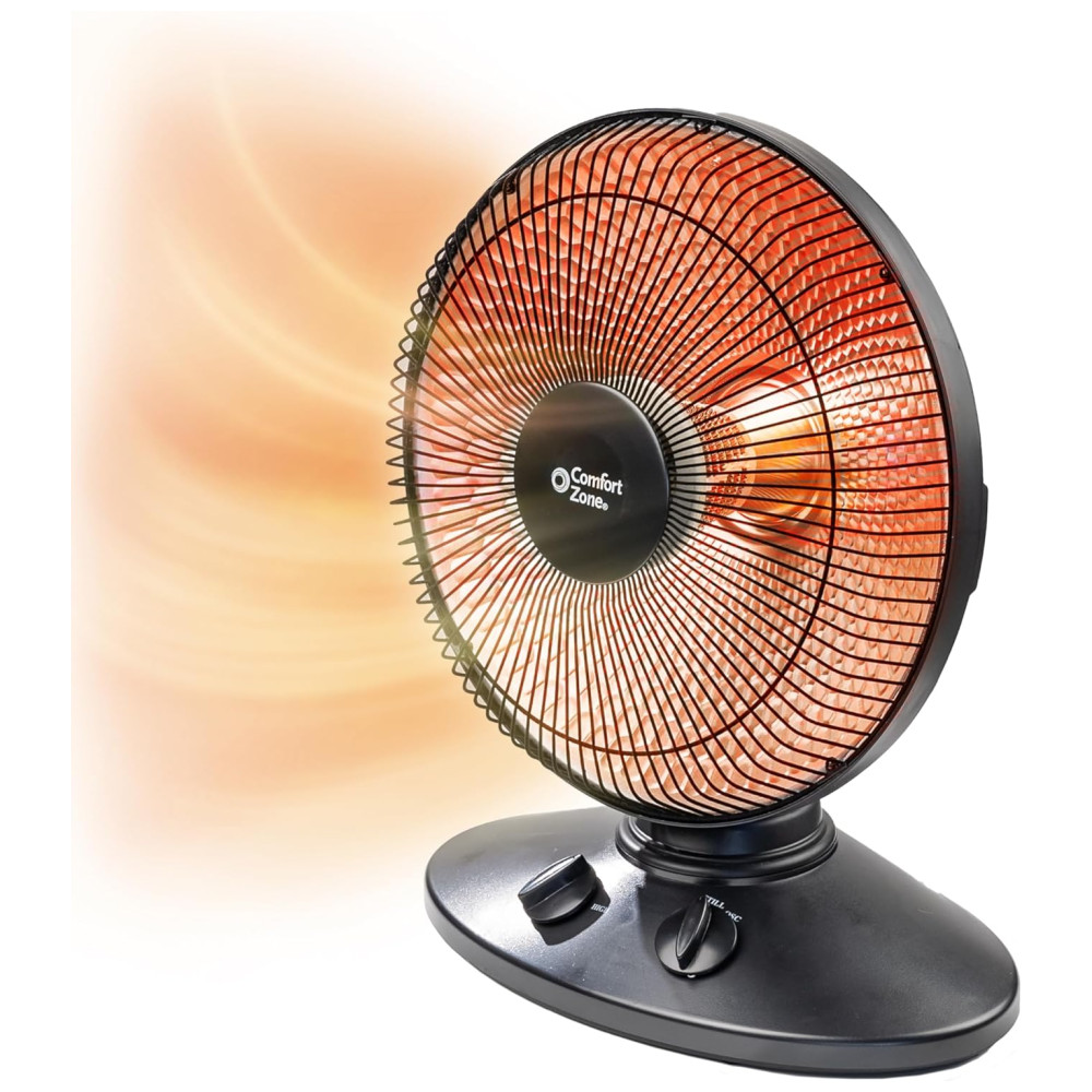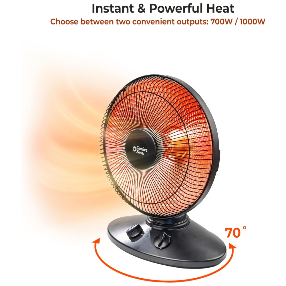 Conheça o Aquecedor Radiante Comfort Zone para Uso Interno com Oscilação de 70 Graus, Refletor de Prato, Elétrico, Inclinação Ajustável, Interruptor de Segurança contra Queda e Sensor de Proteção contra Superaquecimento, Ideal para Garagem, Oficina, 1.000W, CZ998:
