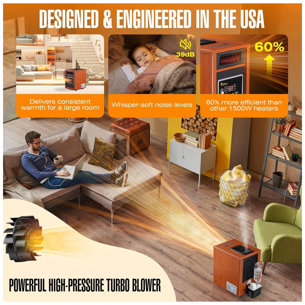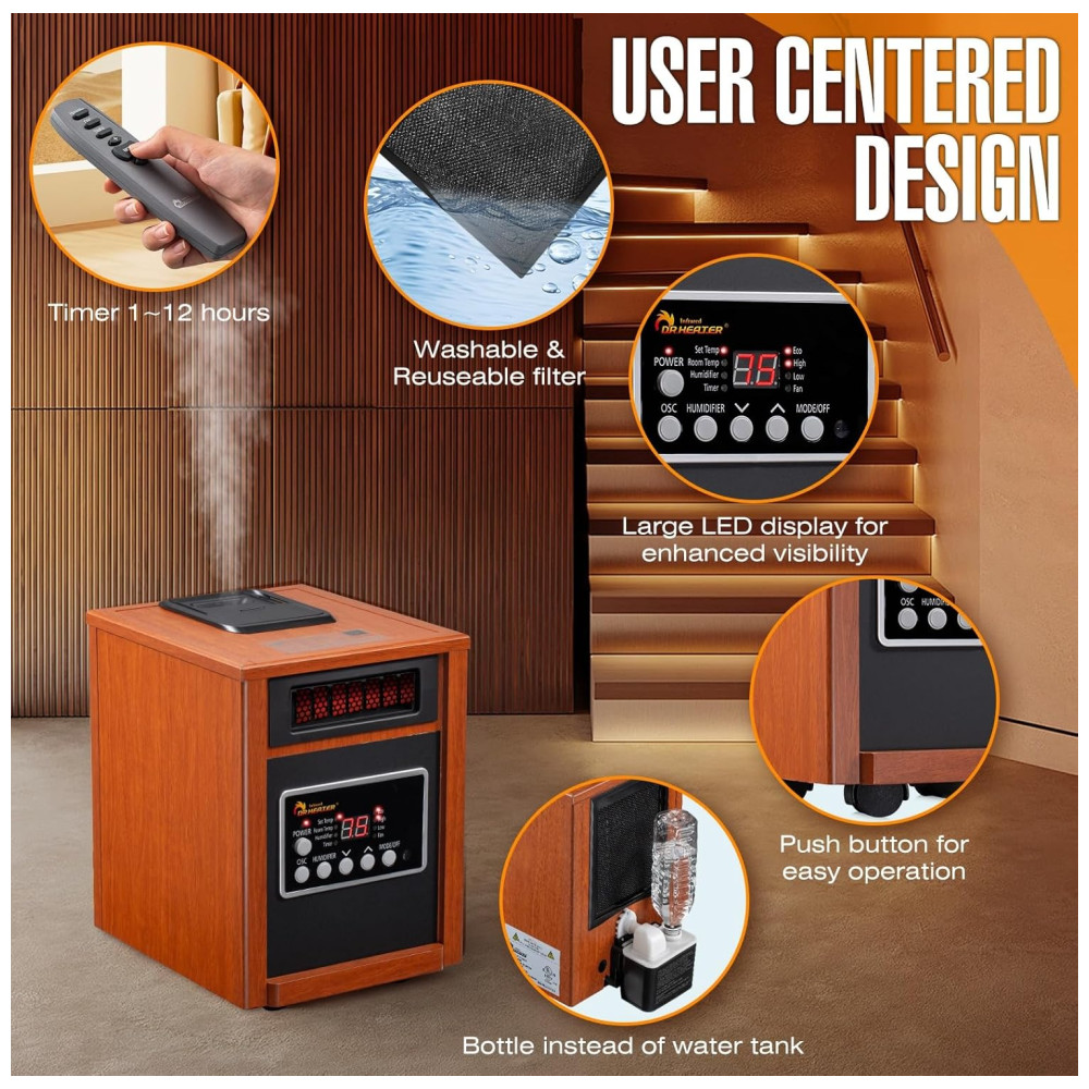 Conheça o Aquecedor Portátil de Espaço Dr. Infrared DR-998, 1500W, com Umidificador, Ventilador Oscilante e Controle Remoto (Cerejeira):