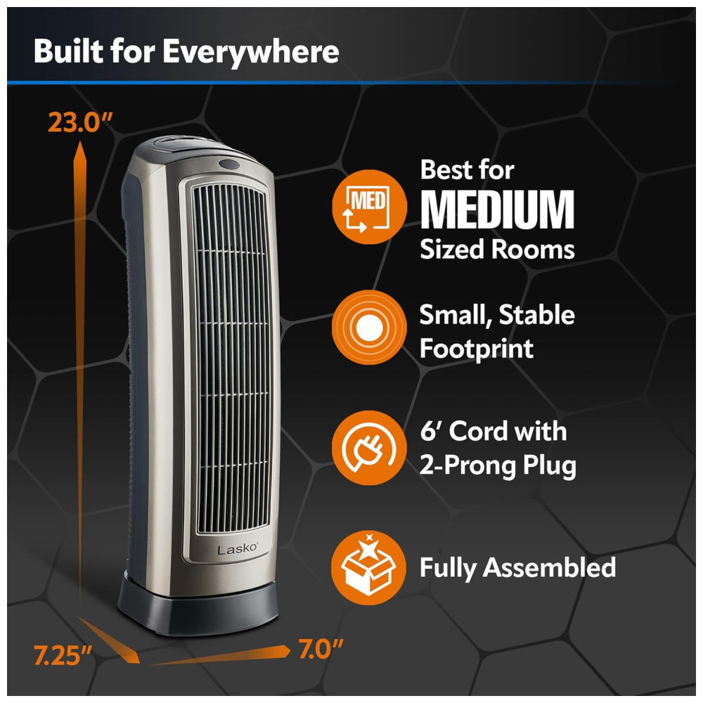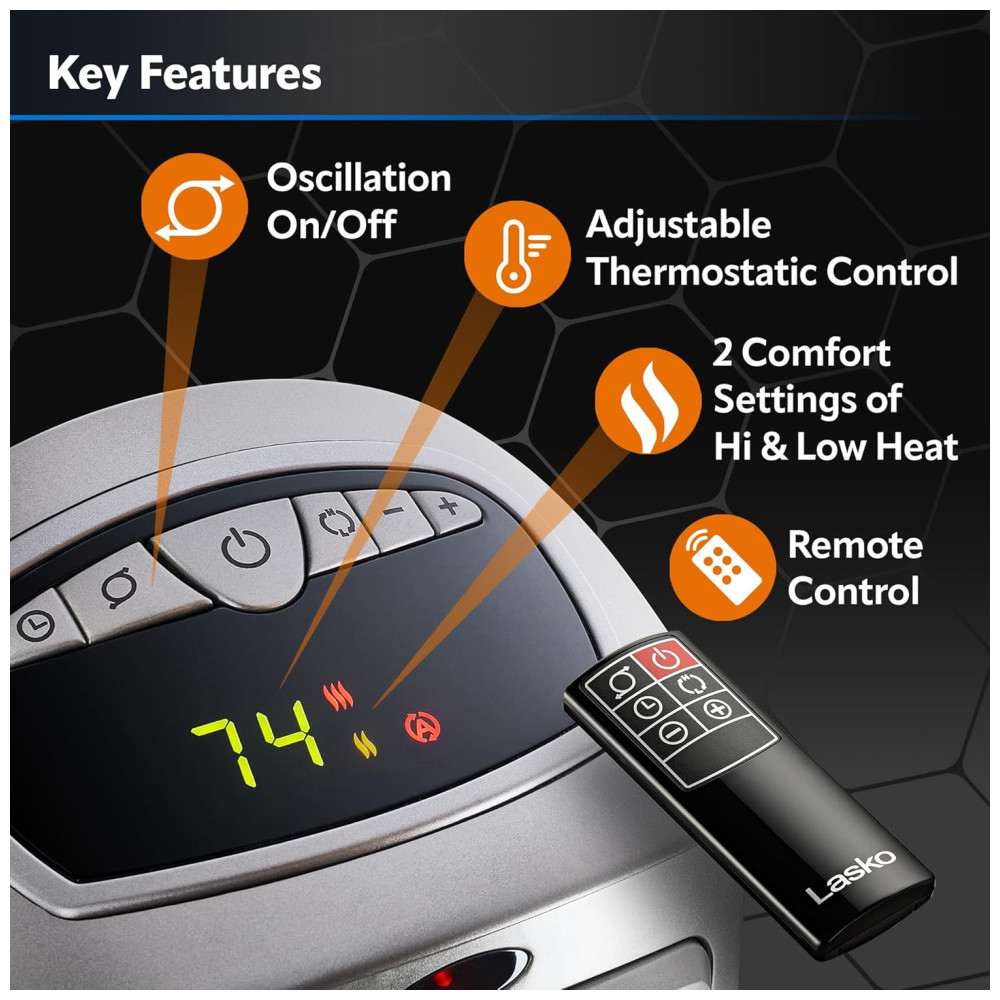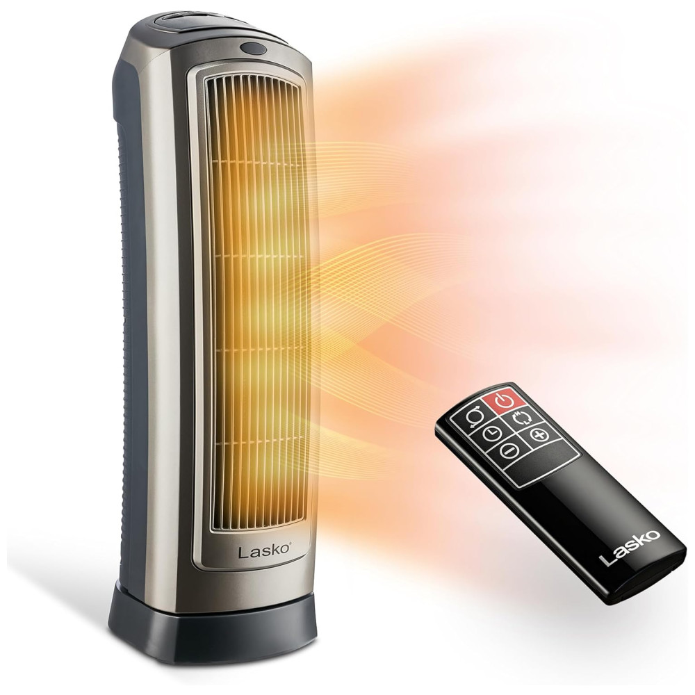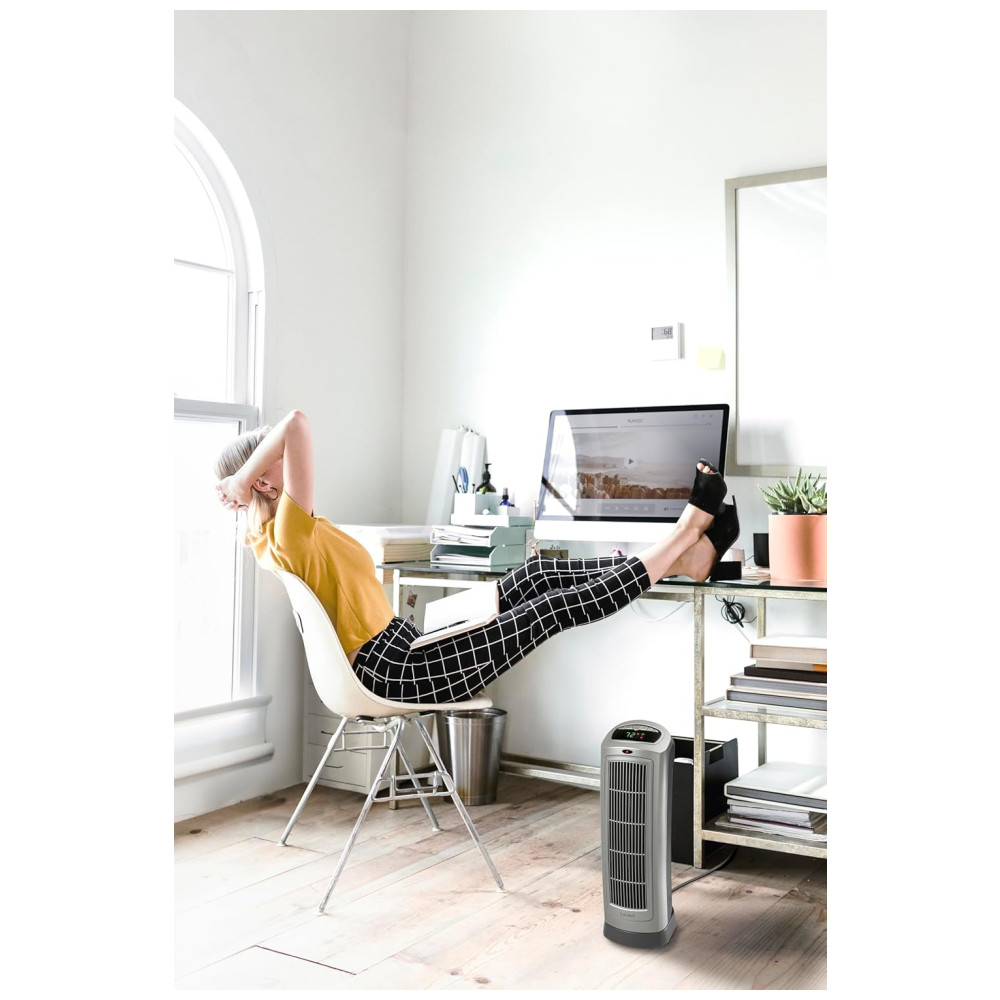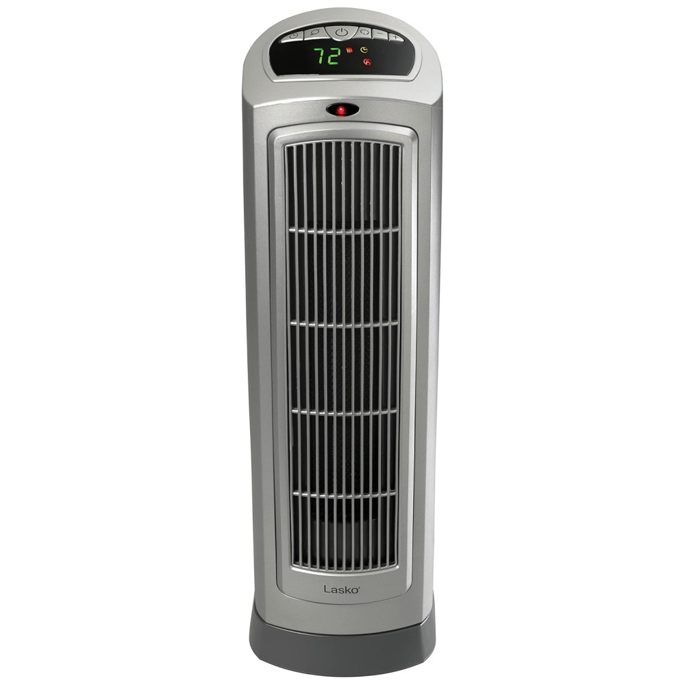 Conheça o Aquecedor Torre Cerâmico Digital Oscilante Lasko para Casa com Termostato Ajustável, Temporizador e Controle Remoto, 1500W, Prateado: