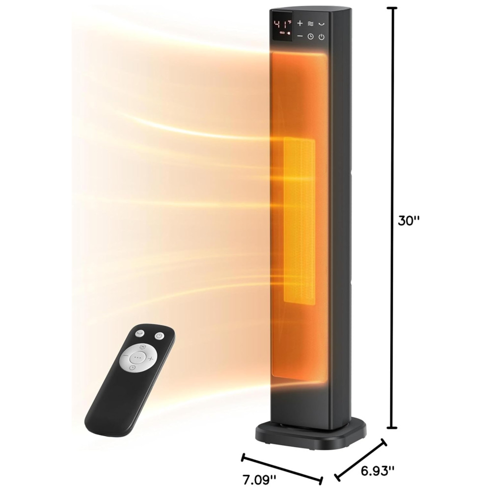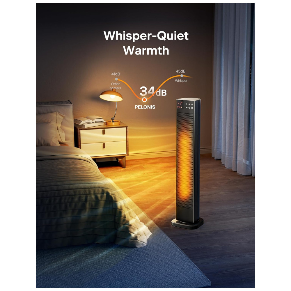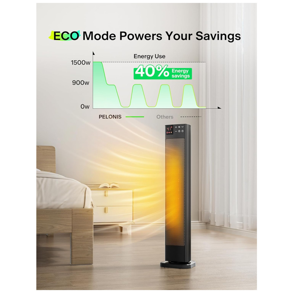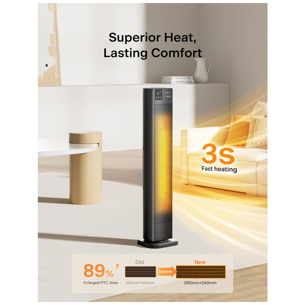 O aquecedor de torre PELONIS PTC é uma excelente opção para aquecer salas pequenas e médias com rapidez e eficiência. Com um poderoso elemento de aquecimento cerâmico PTC, este aquecedor pode fornecer calor instantâneo e direcional em grandes áreas. Com 26 saídas de ar quente, ele pode cobrir até 85,11 metros quadrados e a oscilação de 75 graus ajuda o calor a cobrir todos os cantos da sala.