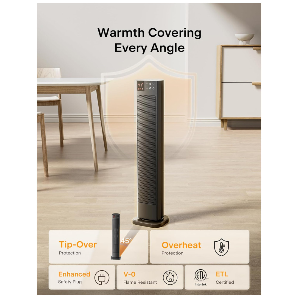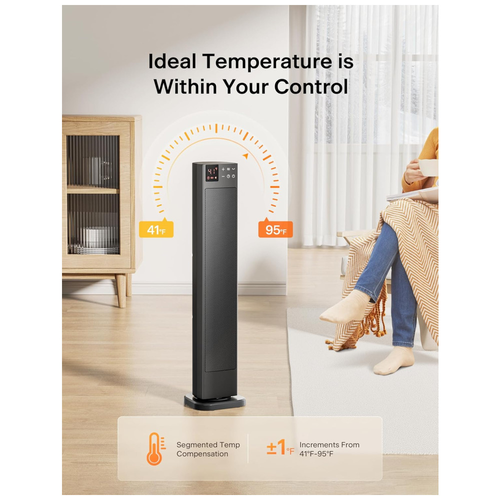 Com uma temperatura constante de aquecimento rápido, este aquecedor pode aquecer até 21ºC em 3 segundos, proporcionando uma temperatura confortável e consistente. O painel digital e o controle remoto tornam fácil alterar a temperatura e o modo, e com uma precisão de ajuste de -15ºC, você pode escolher a temperatura mais confortável. Além disso, o temporizador extralongo de 12 horas elimina muitos problemas de operação.