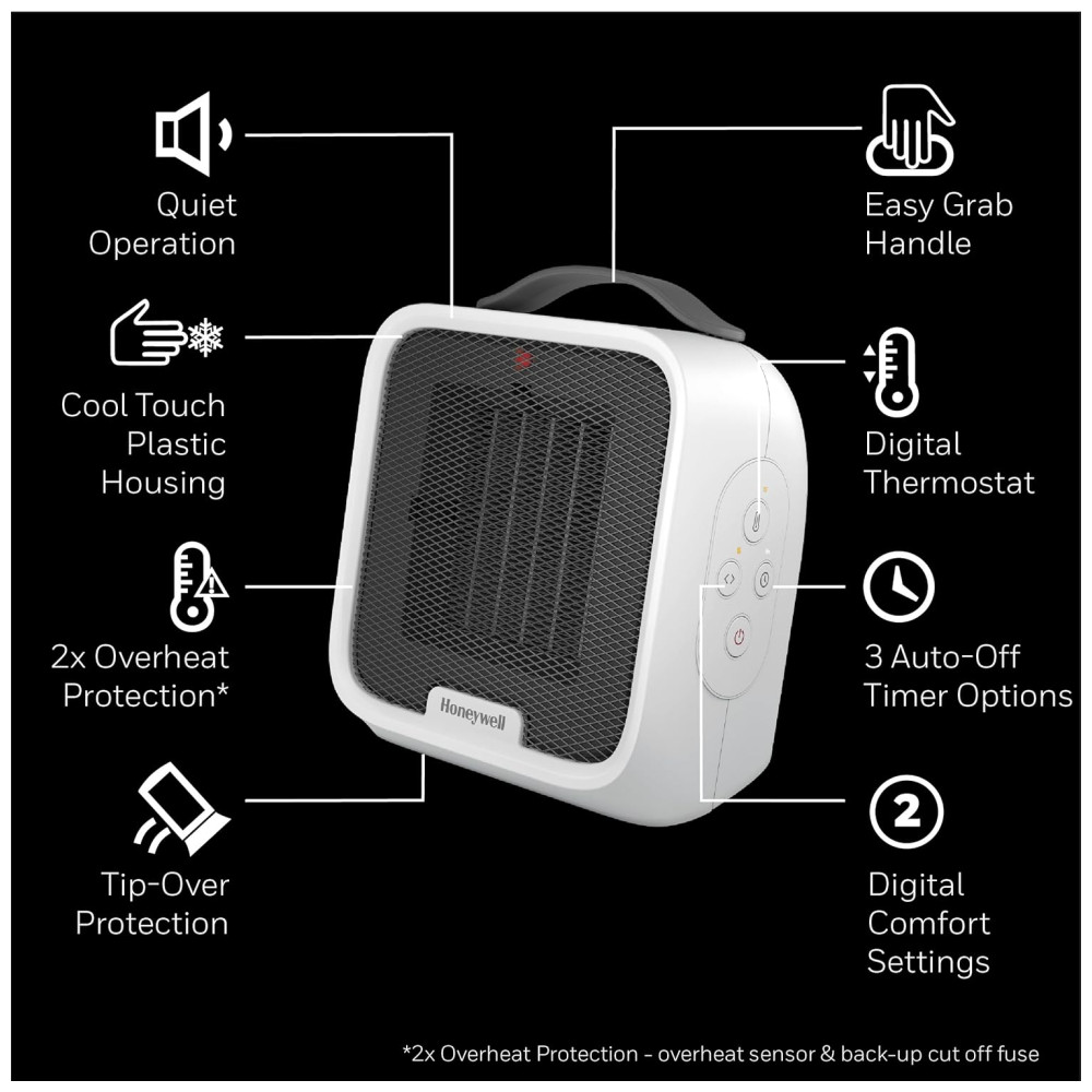 Descubra o Aquecedor de Espaço de Cerâmica Honeywell UberHeat Plus para Pequenos Ambientes, Branco