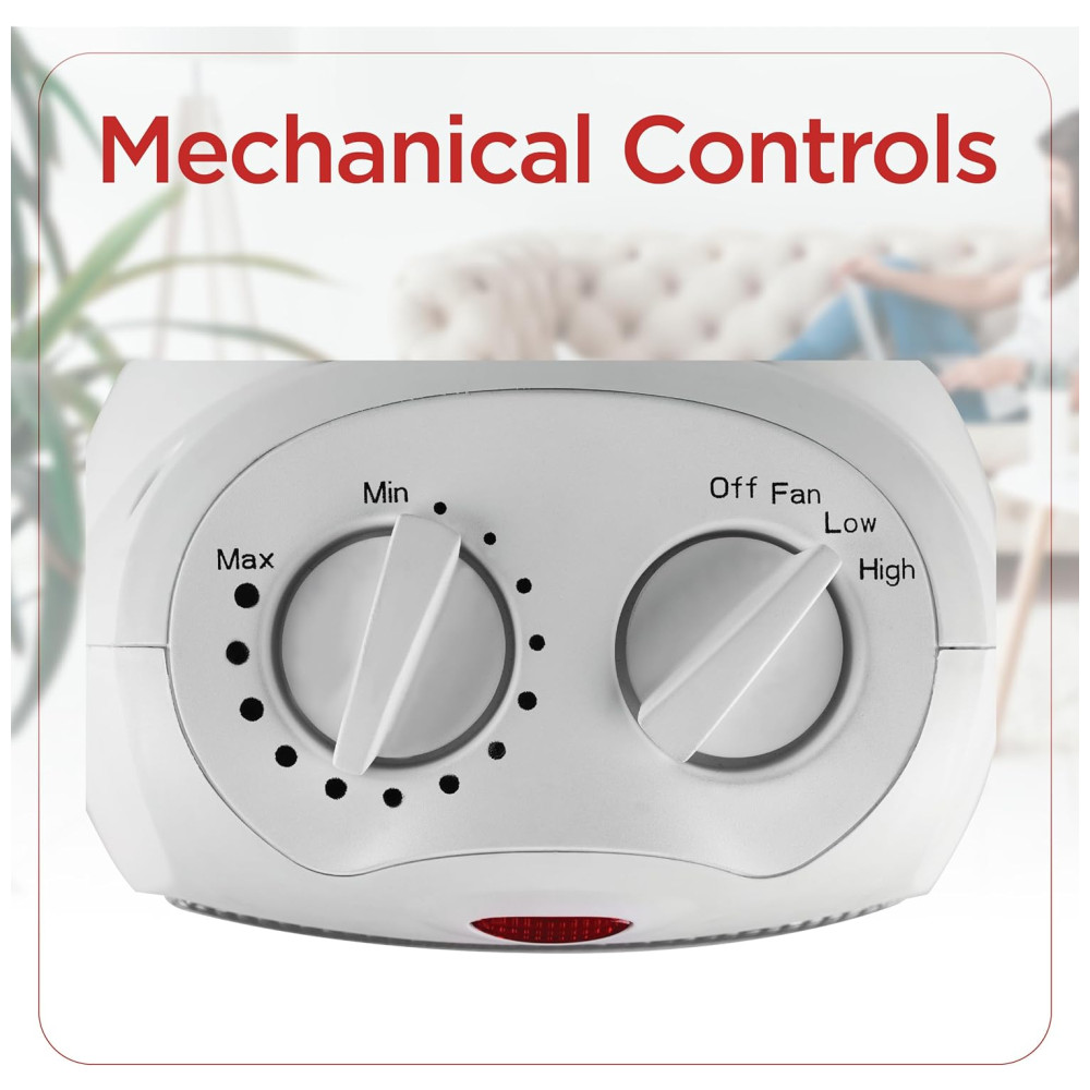 Combinação de Aquecedor e Ventilador – Este pequeno aquecedor e ventilador é ultra compacto, mas poderoso. Com apenas 19 x 16 x 24 cm, cabe na mesa do seu dormitório ou escritório, na mesa do quarto, na bancada do porão, na prateleira do trailer – praticamente em qualquer lugar que você precise de calor extra.
