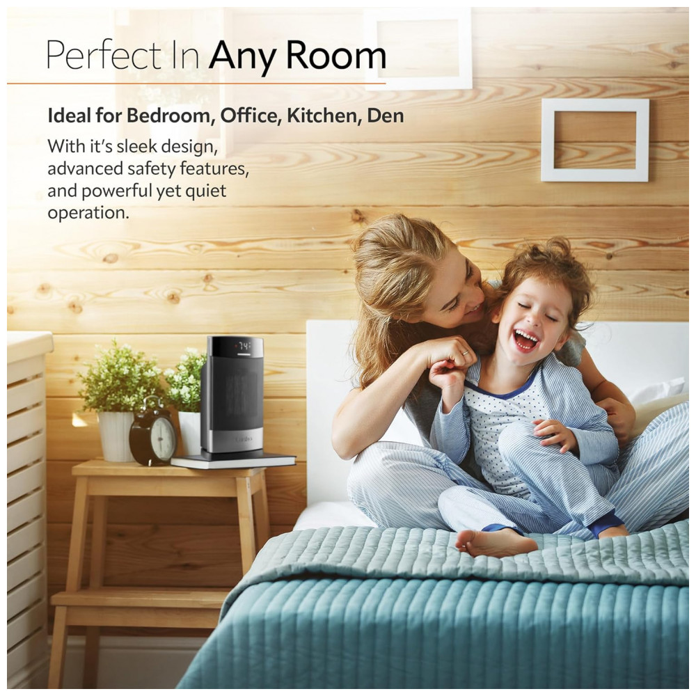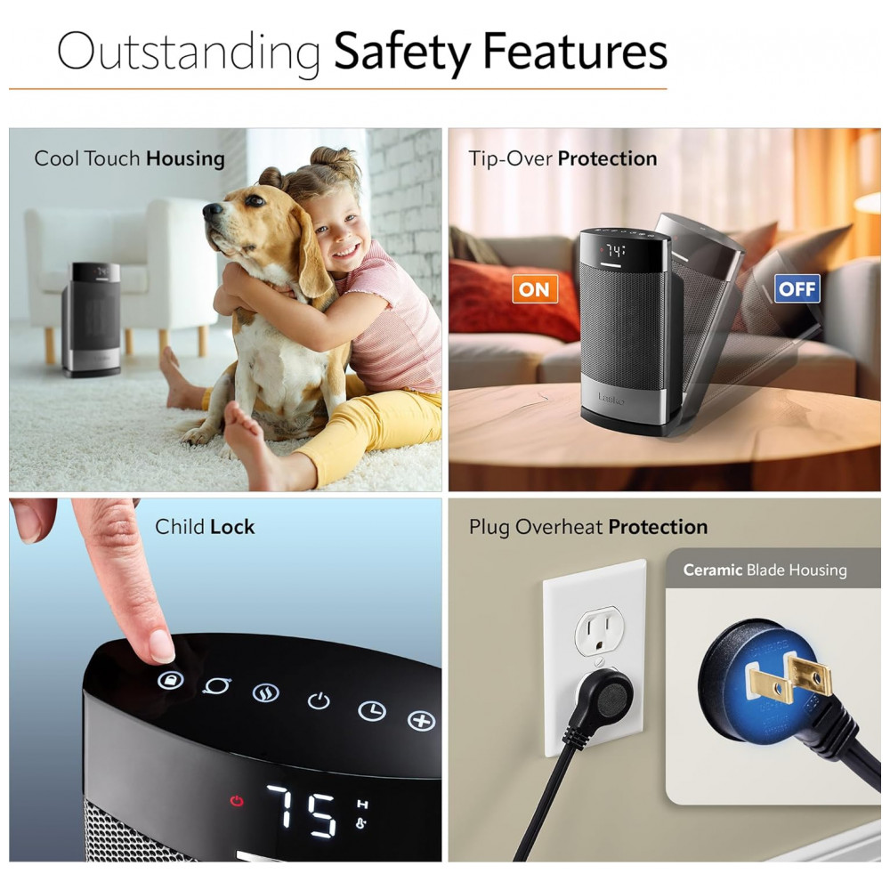 Personalize seu Conforto: Use os controles sensíveis ao toque para selecionar entre 3 configurações de calor e 2 configurações de ventilação para personalizar seu conforto. O grande display digital é fácil de ler e possui tecnologia de atenuação automática. O controle remoto incluído oferece conveniência, permitindo que você opere este aquecedor de espaço do conforto da sua cama ou sofá.