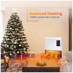 Aquecimento Rápido e Balanceado; O aquecedor de parede tem 1500W, o que pode cobrir quartos de tamanho médio de até 15 metros quadrados como fonte suplementar de calor; Com um turboventilador embutido e tubo de quartzo, o aquecedor para grande ambiente proporciona calor envolvente para todo o cômodo de forma mais rápida e uniforme; Além disso, este aquecedor de parede pode auxiliar na convecção cruzada natural no ambiente durante o inverno; O aquecedor pode aquecer rapidamente e de maneira equilibrada.