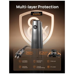 Experimente calor poderoso e amplo instantaneamente com o aquecedor cerâmico de 30″ da Dreo, apresentando um elemento PTC de 308mm, design térmico Hyperamics aprimorado e oscilação personalizável de 30°, 60°, 90° e 120°, perfeito para ambientes amplos de até 300 pés. Mantenha-se aquecido com tranquilidade neste inverno com os 8 níveis de proteção abrangente oferecidos pelo aquecedor, incluindo material retardante de chamas V0, carcaça fria ao toque, plugue FortPlug, fiação termicamente isolada, trava de segurança infantil, proteção contra tombamento de 45° e proteção contra superaquecimento, tudo certificado pela ETL. Escolha entre os 5 níveis de calor e o modo ECO para calor ideal ou alterne entre os 3 níveis de ventilação para circulação de ar. Controlado por tecnologia de silicone avançada, este aquecedor eficiente em energia oferece controle preciso de temperatura e até 50% de economia de energia, proporcionando conforto o dia inteiro sem preocupações com as contas de eletricidade. Aproveite um ambiente quente e confortável sem perturbações. O design inovador do fluxo de ar da Dreo reduz o ruído para apenas 25 dB, tornando este aquecedor ideal para quartos para uma noite de sono tranquila ou um ambiente de trabalho silencioso.