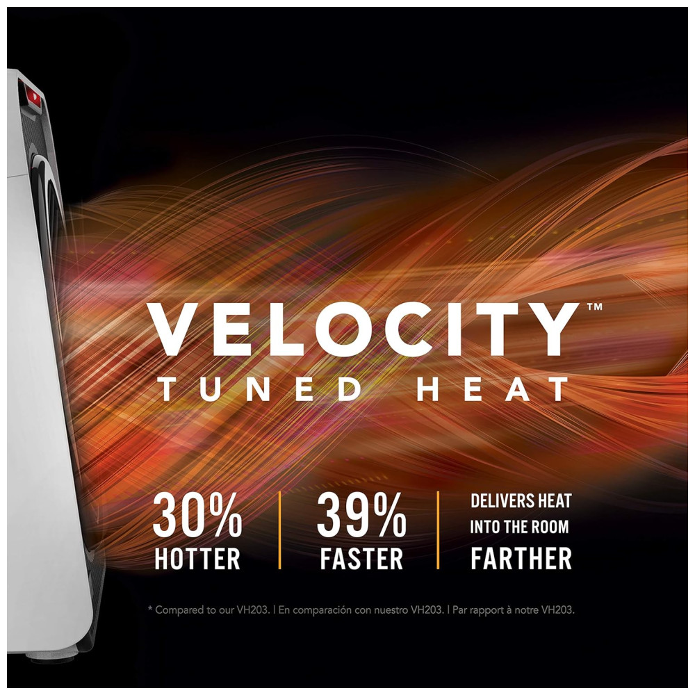 DESEMPENHO APRIMORADO – Com o calor ajustado pela tecnologia Velocity Tuned Heat, o Velocity 1 oferece um calor mais intenso do que nunca. Sua aerodinâmica especialmente ajustada move mais ar mais rápido e mais longe, enquanto produz um som ligeiramente maior, cerca de 10 decibéis a mais do que um aquecedor Vornado tradicional.