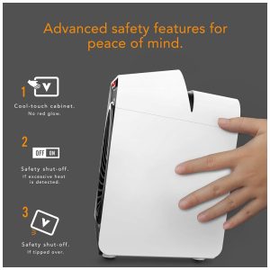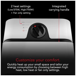 AQUECIMENTO EFICIENTE – 2 configurações de calor silenciosas (Baixo/375W, Alto/750W) e uma opção somente ventilador permitem ajustar a saída de calor e o consumo de energia conforme necessário.