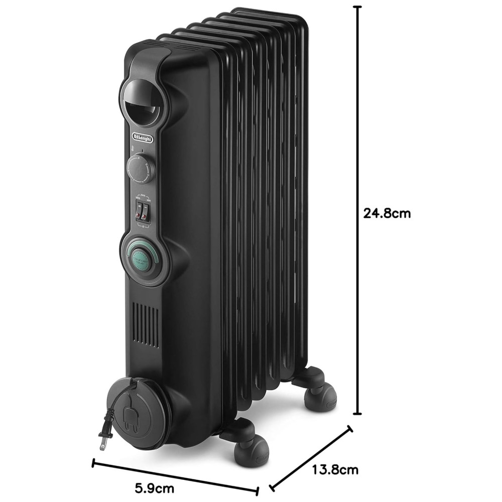 Aquecedor Elétrico Portátil a Óleo Silencioso 110V 1500W DELONGHI KH390715CB Preto