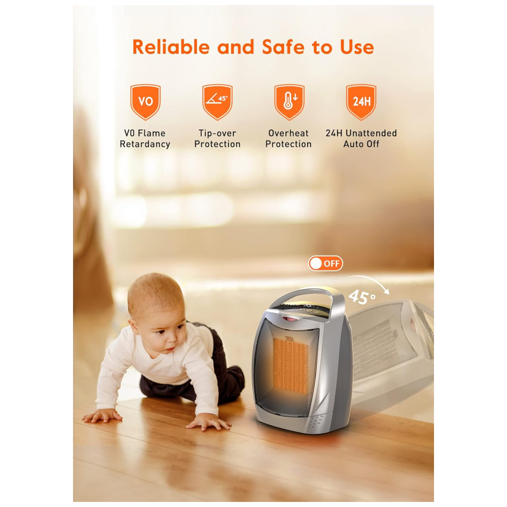 Segurança em Primeiro Lugar: Testado pela ETL, este aquecedor possui proteção automática contra superaquecimento, desligamento automático em caso de inclinação e desligamento automático após 24 horas de uso não supervisionado.