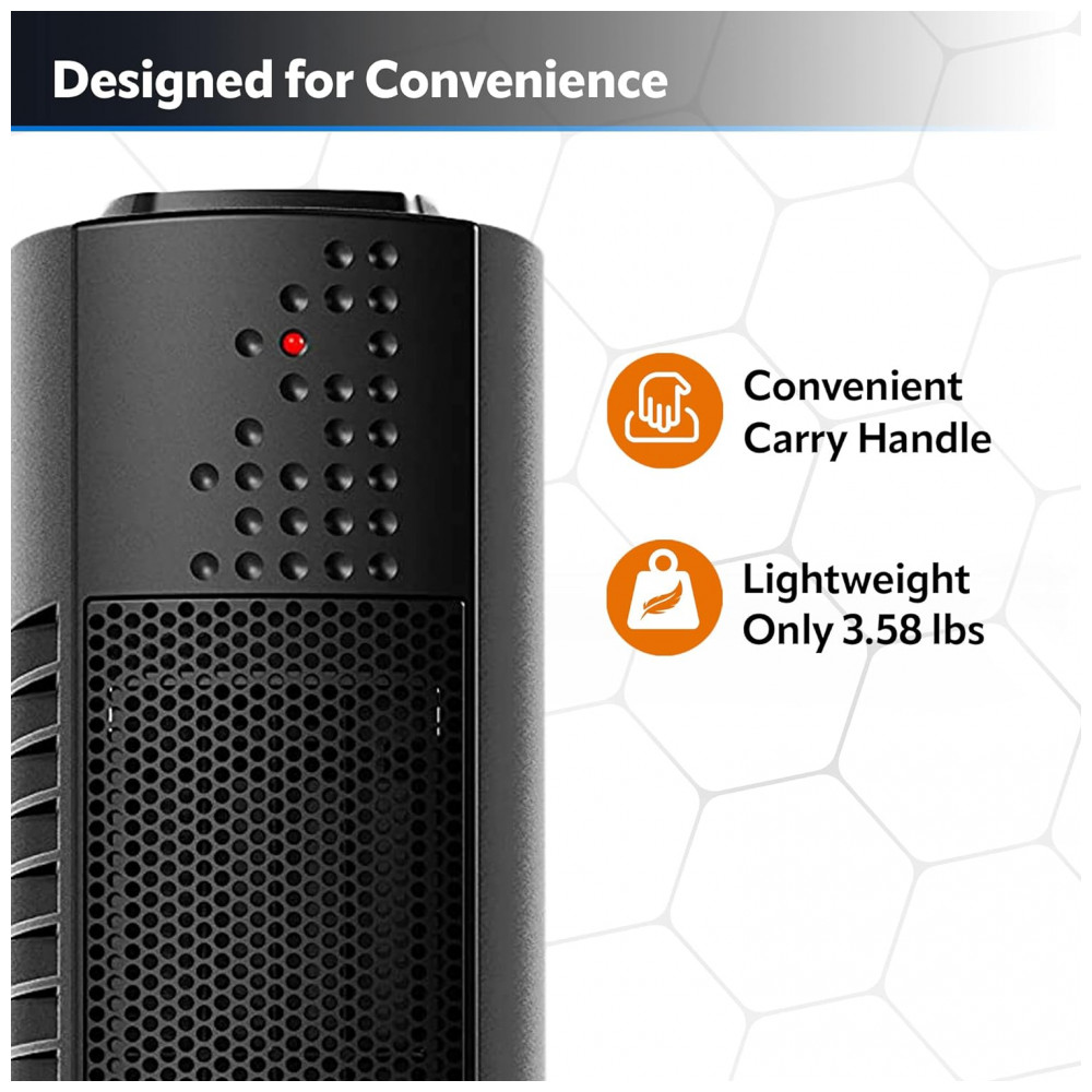 Fácil de Usar: Vem totalmente montado. Basta tirá-lo da caixa e plugá-lo diretamente em uma tomada padrão de 110V. Com 35,8 cm de altura, 14 cm de comprimento e 10,2 cm de largura, este pequeno aquecedor de espaço cabe facilmente em uma mesa, escrivaninha, bancada ou criado-mudo, sendo ideal para aquecer o quarto, escritório em casa, cozinha ou qualquer lugar que precise de calor.