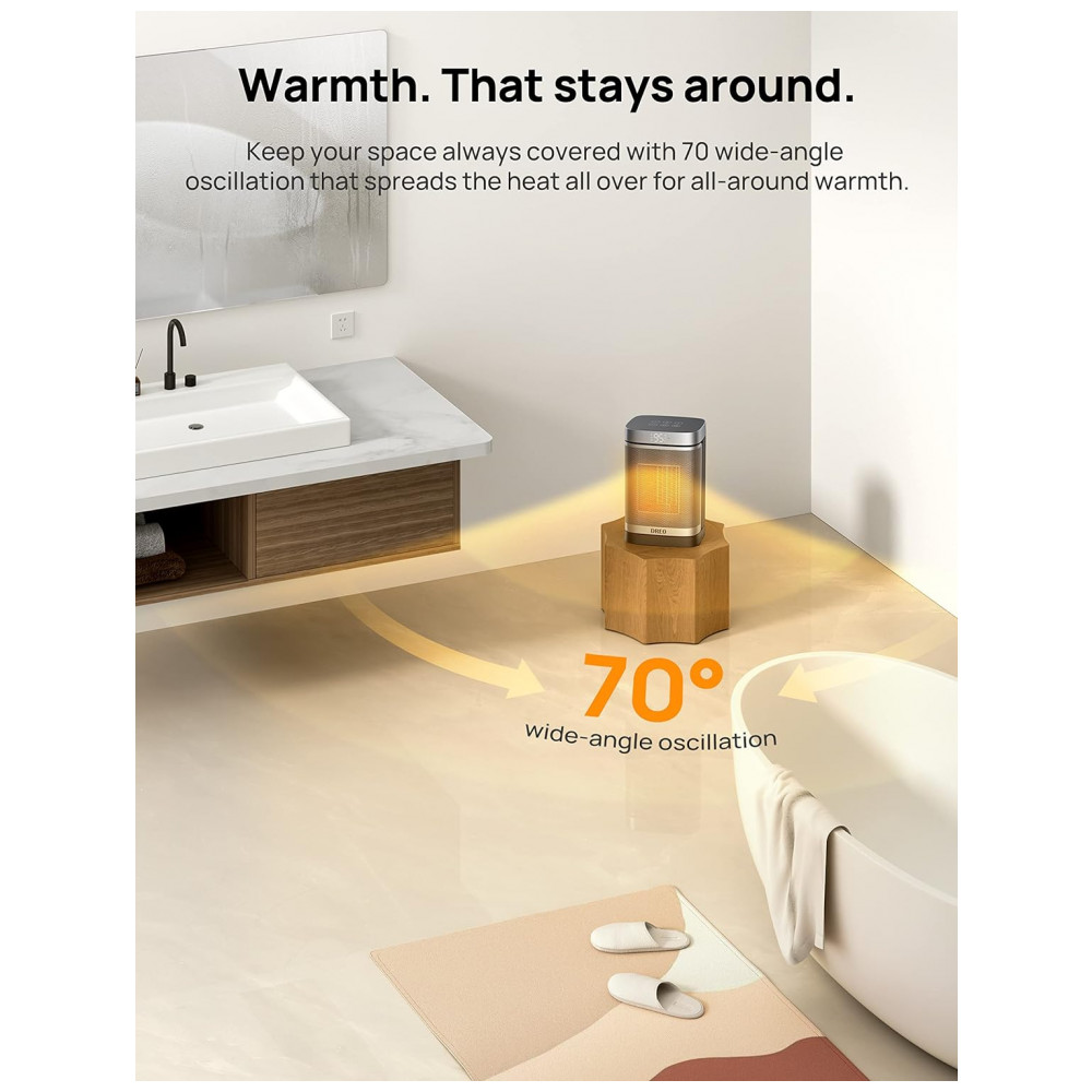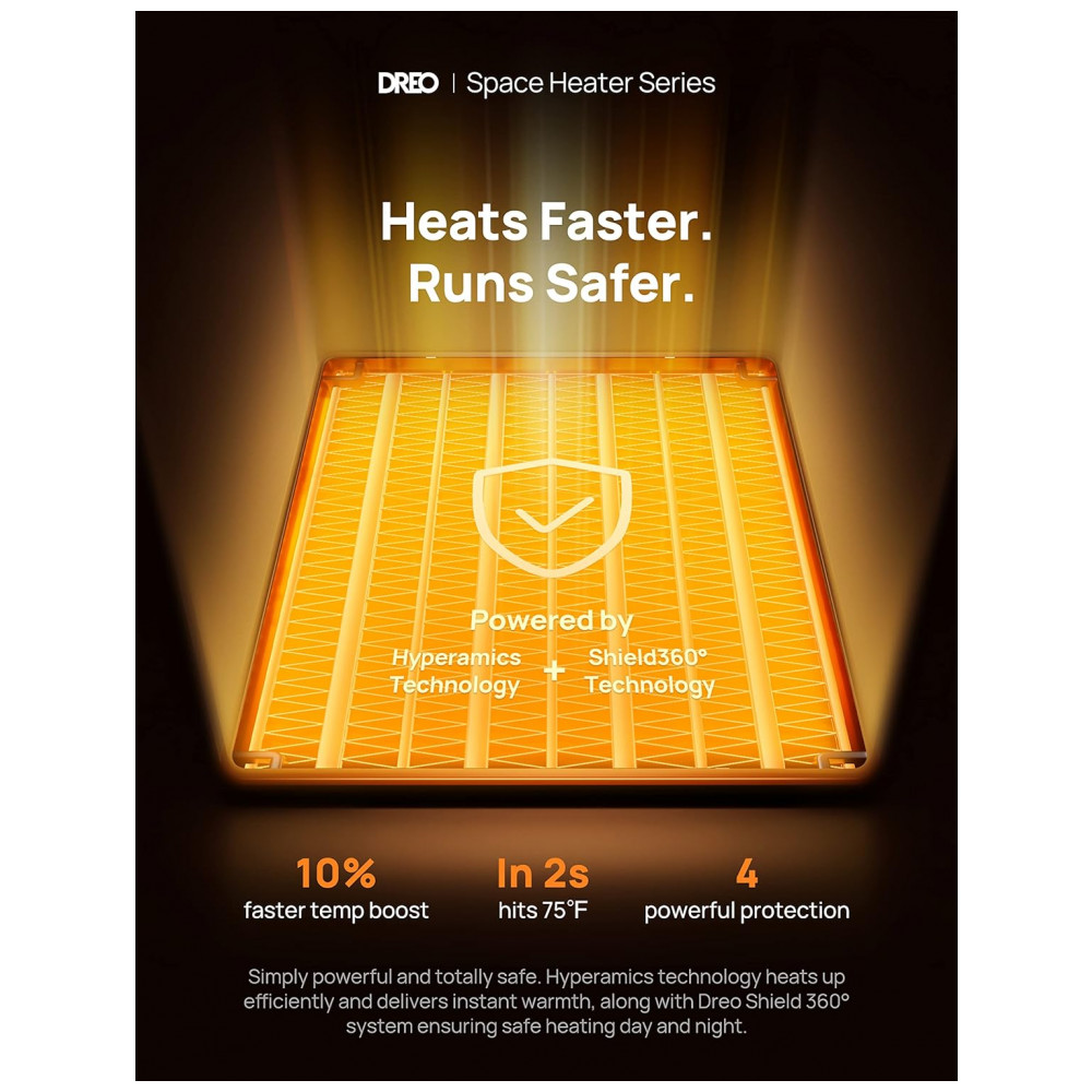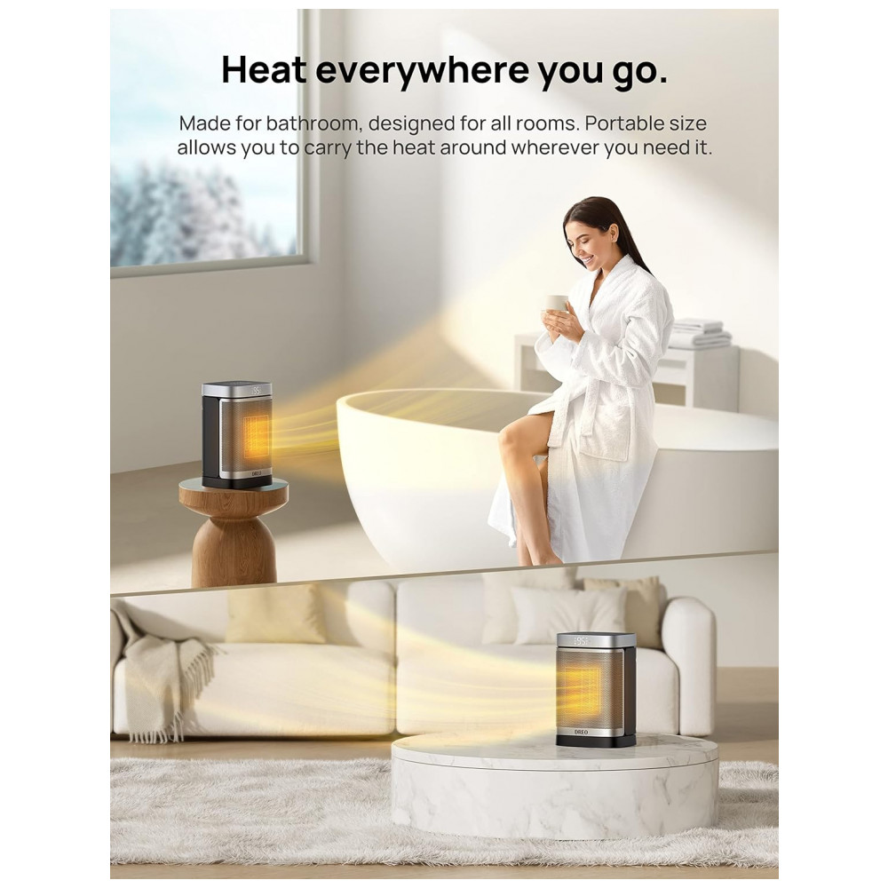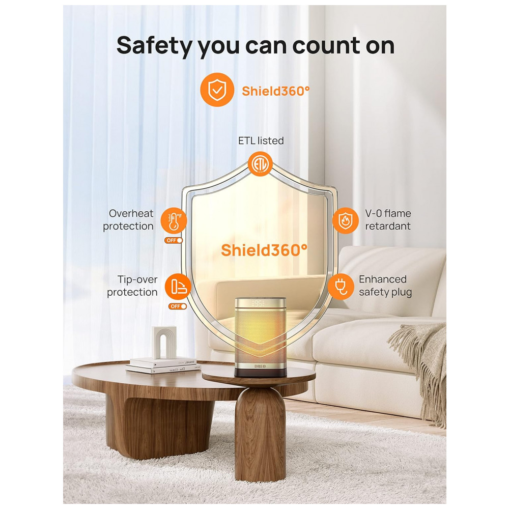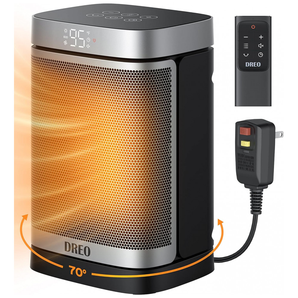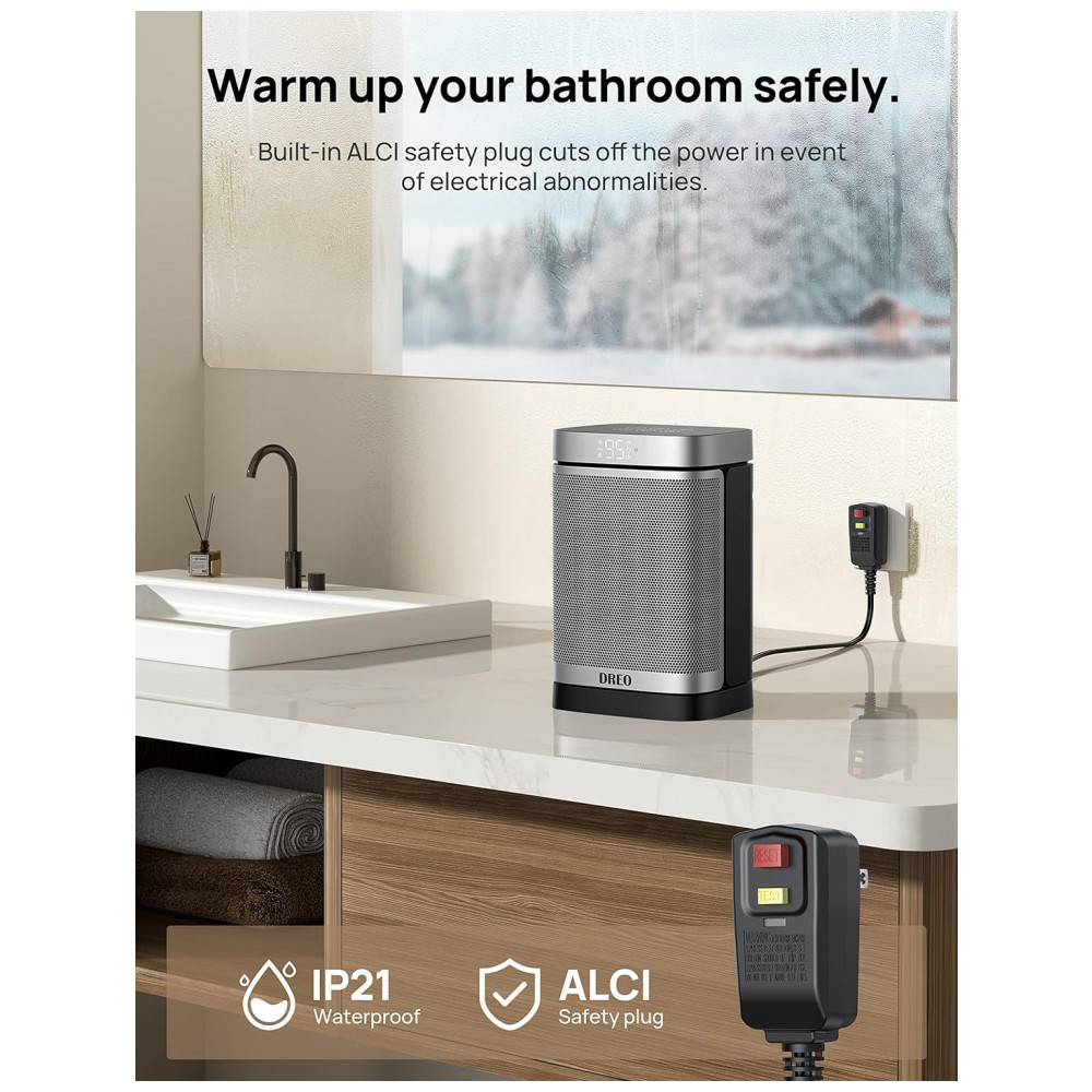 Mais seguro para banheiros: A maioria dos aquecedores de espaço não funciona em banheiros devido a preocupações de segurança, e o uso de aquecedores em banheiros também reduziria a vida útil do produto. No entanto, o plugue de segurança Dreo ALCI, que desliga o pequeno aquecedor imediatamente em caso de curto-circuito e contato com a água, mantém você aquecido e seguro no banheiro durante os dias mais frios.