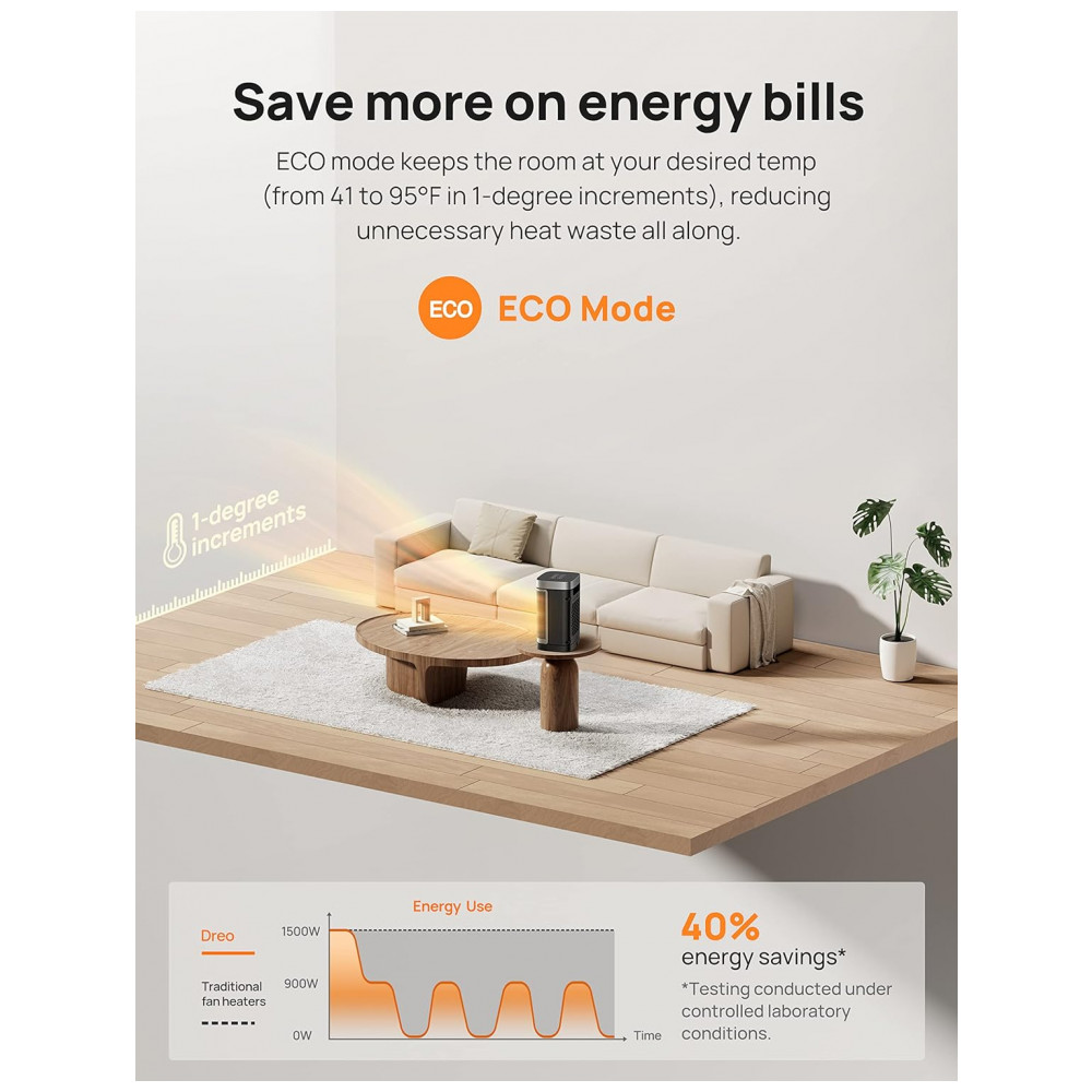 Aquecedor Elétrico Portátil de Cerâmica com 5 Modos Tela LED e Controle Remoto 1500W 110V Dreo Preto