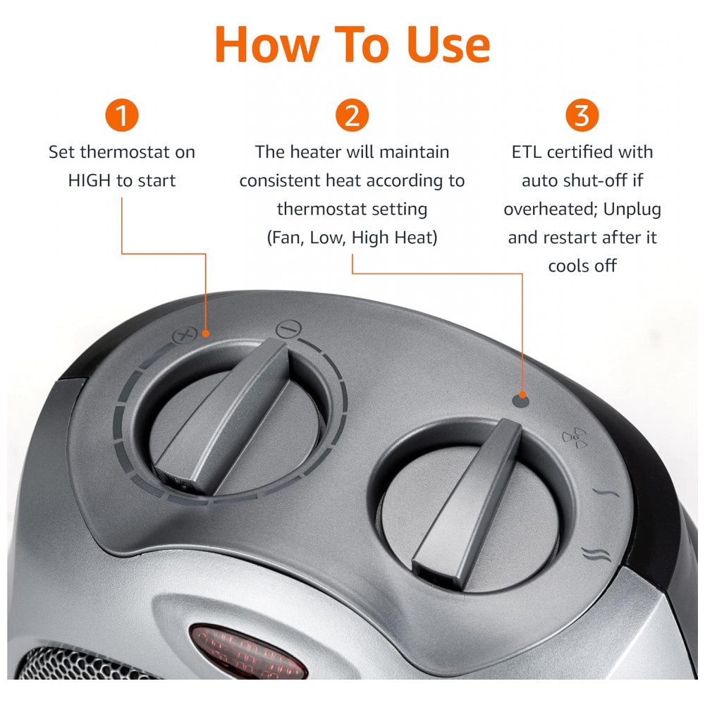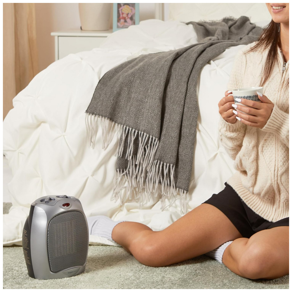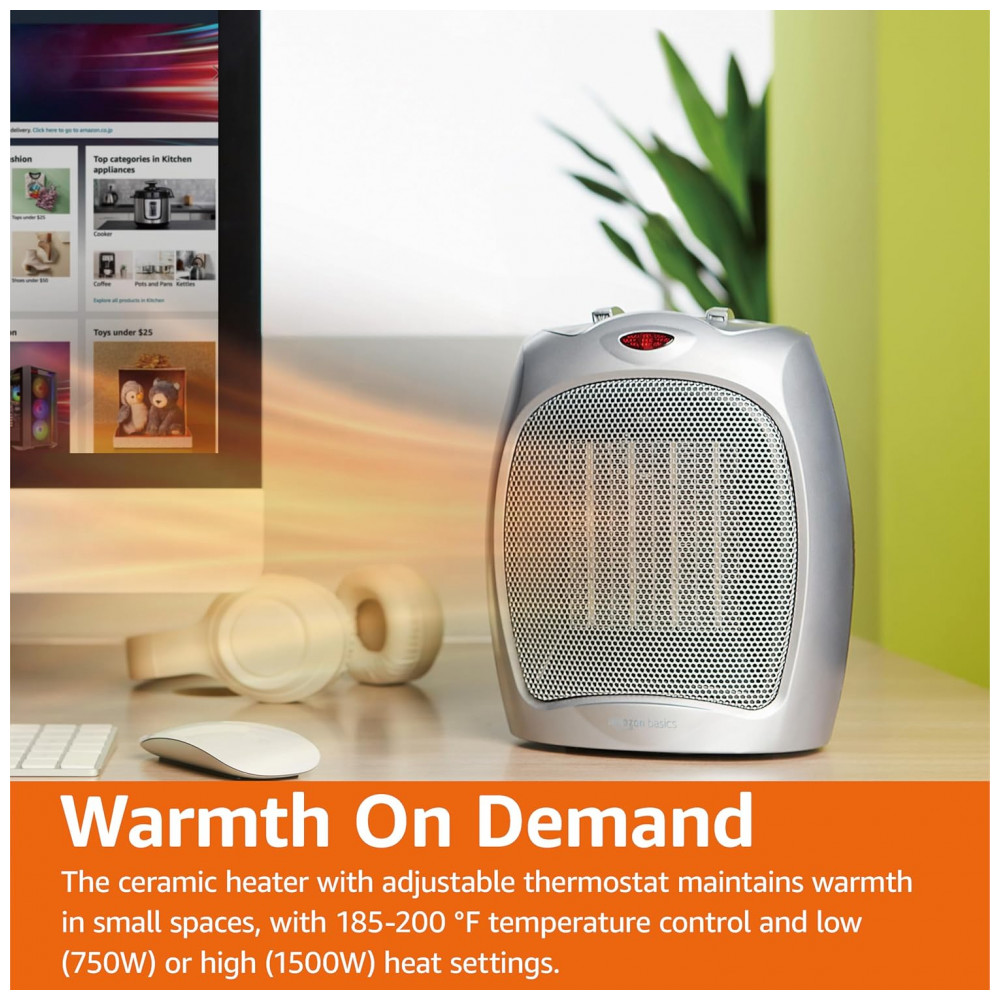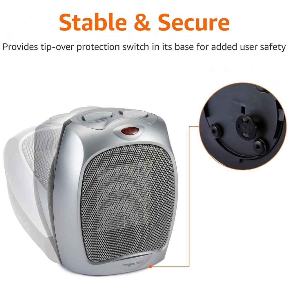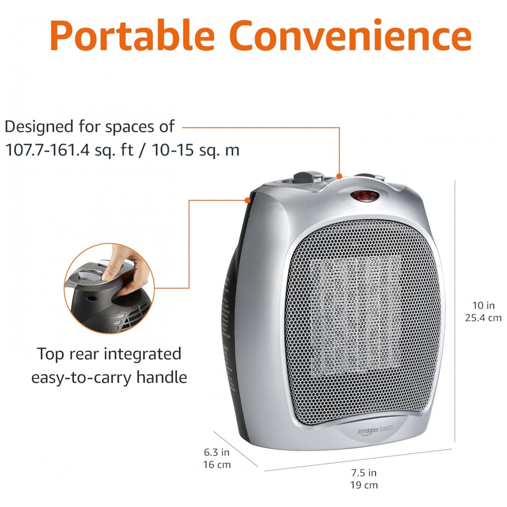 Aqueça seus espaços com estilo e eficiência usando o Aquecedor Pessoal Cerâmico Amazon Basics 1500W em Prata. Equipado com um termostato ajustável, este aquecedor é ideal para manter pequenos ambientes aconchegantes e quentes.