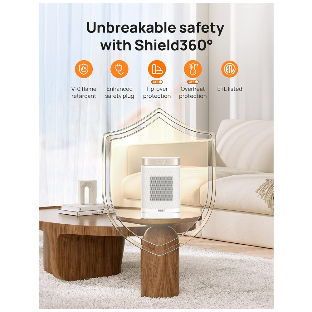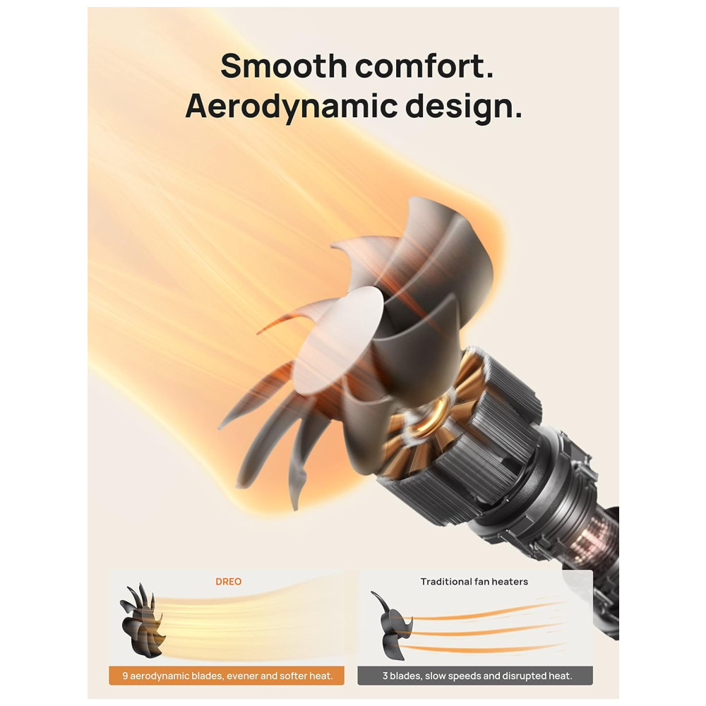 Calor mais rápido do que nunca Alimentado por Dreo PTC Ceramic, este aquecedor elétrico de ambiente de 1500 W aquece com mais eficiência, atingindo a temperatura desejada em questão de segundos, permitindo que você sinta um calor instantâneo e ameno imediatamente