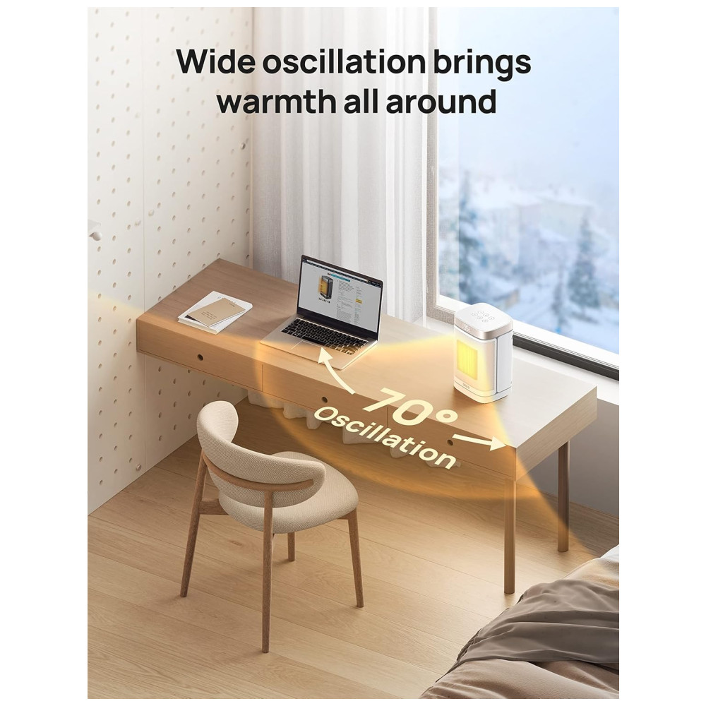 Aqueça qualquer ângulo experimente o calor que o envolve da maneira mais ampla possível. A oscilação de ângulo amplo de 70 cobre toda a área, fornecendo calor de amplo alcance para seu quarto, garagem, porão, escritório, mesa, etc.