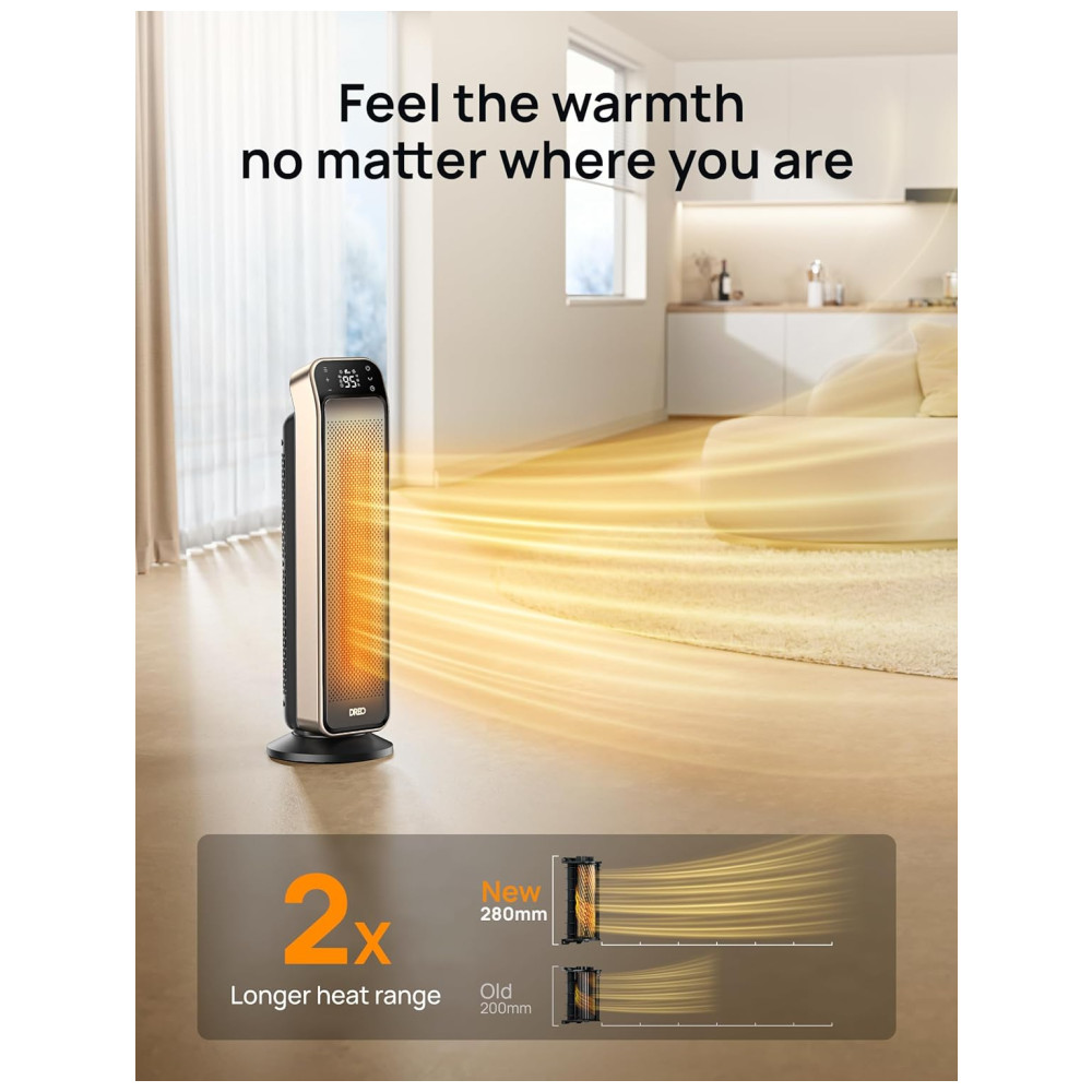 A Experiência Definitiva em Aquecimento: O aquecedor espacial cerâmico de 63,5 cm da Dreo proporciona aquecimento rápido de 3,5 m/s graças ao seu novo design térmico hyperamics, enquanto o impelidor estendido duplica o alcance de calor, tornando-o ideal para grandes salas e invernos mais quentes.