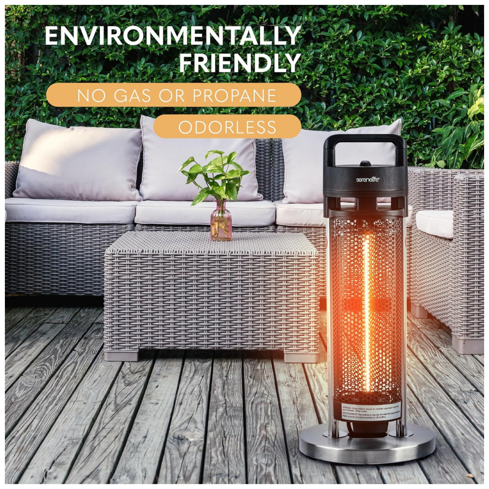 EFICIENTE ENERGÉTICO Os aquecedores externos SereneLife para pátio à prova dágua aquece instantaneamente e transfere diretamente o calor para o corpo, tornando o altamente eficiente em termos energéticos e também inodoro e não precisa de gás ou propano, tornando o ecológico
