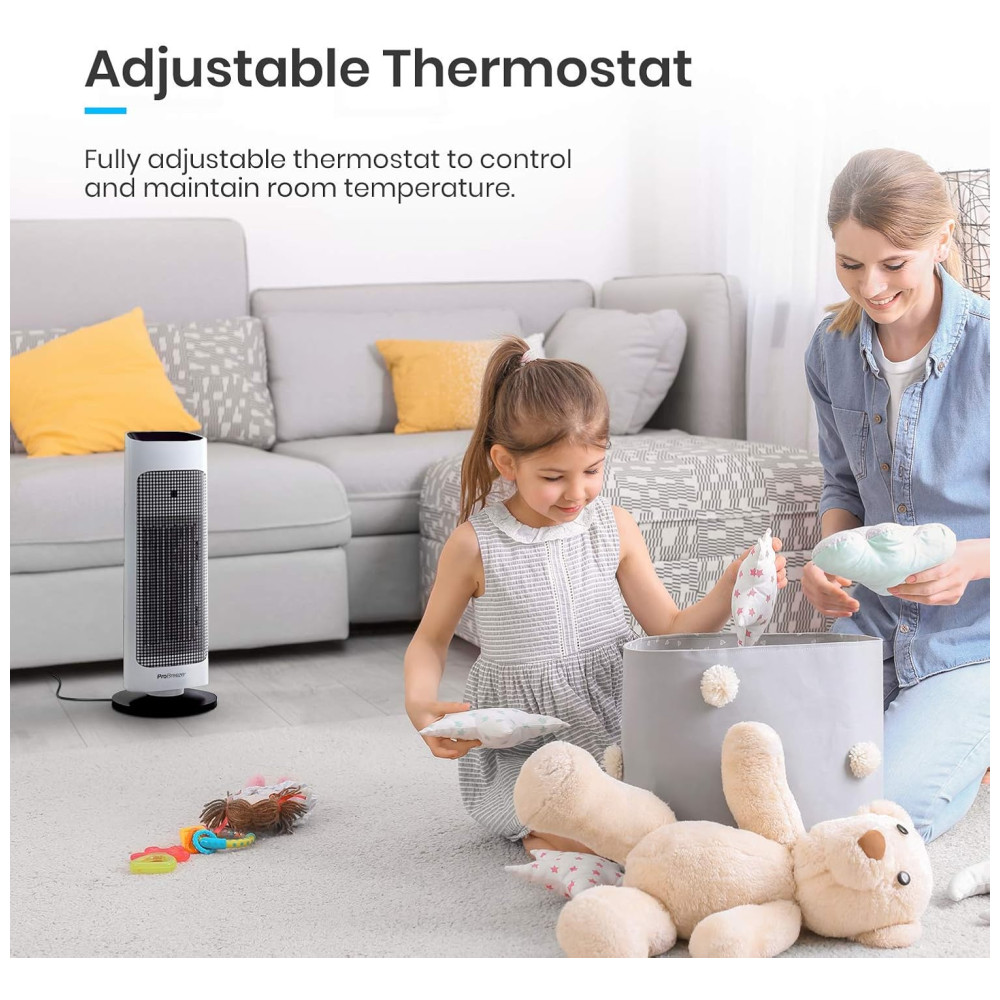 AQUECIMENTO PODEROSO E AJUSTÁVEL: Projetado com elementos cerâmicos de aquecimento rápido extra grandes e dois ventiladores potentes que fornecem aquecimento rápido e eficiente. Basta selecionar a temperatura desejada de 4°C a 35°C, e o aquecedor elétrico alcançará e manterá automaticamente essa temperatura.