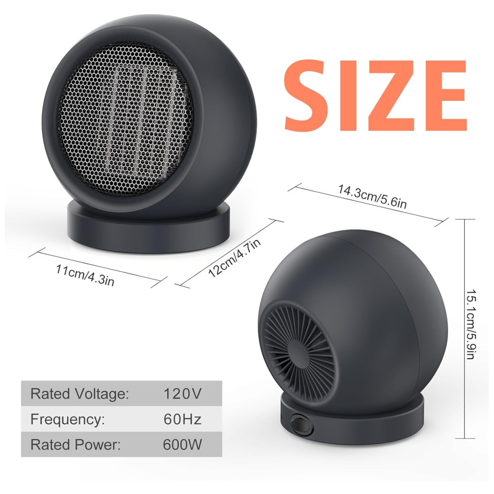 Aquecedor Espacial Portátil Ventilador de Aquecimento de Alta Potência com Elementos Cerâmicos PTC para Uso Interno – Cinza EscuroCoolfor