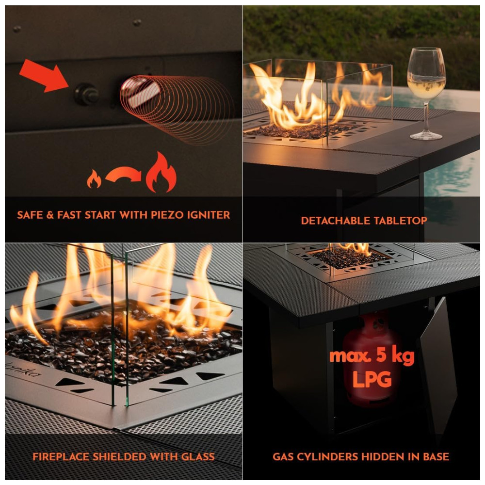 Aquecedor Externo a Gás GLP Estilo Mesa e Fogueira Ideal para Pátios Comerciais Planika Preto Moderno