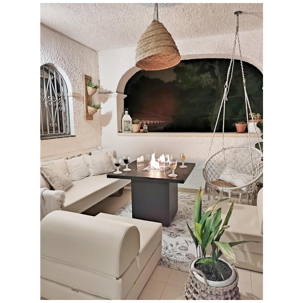Transforme seu pátio em um ambiente acolhedor e sofisticado com o Aquecedor Externo a Gás GLP Estilo Mesa e Fogueira da Planika.