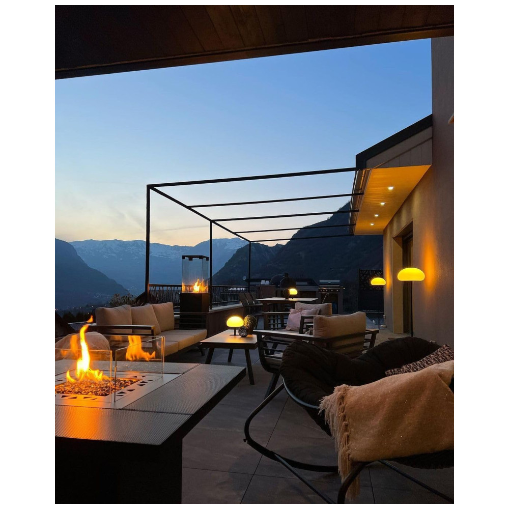 Este aquecedor apresenta uma inovação única – uma mesa funcional que abriga a chama, perfeita para criar um ambiente acolhedor para os seus clientes. Com quatro tampos de mesa removíveis, você pode adaptar o espaço conforme necessário, criando um ambiente convidativo em seu jardim.