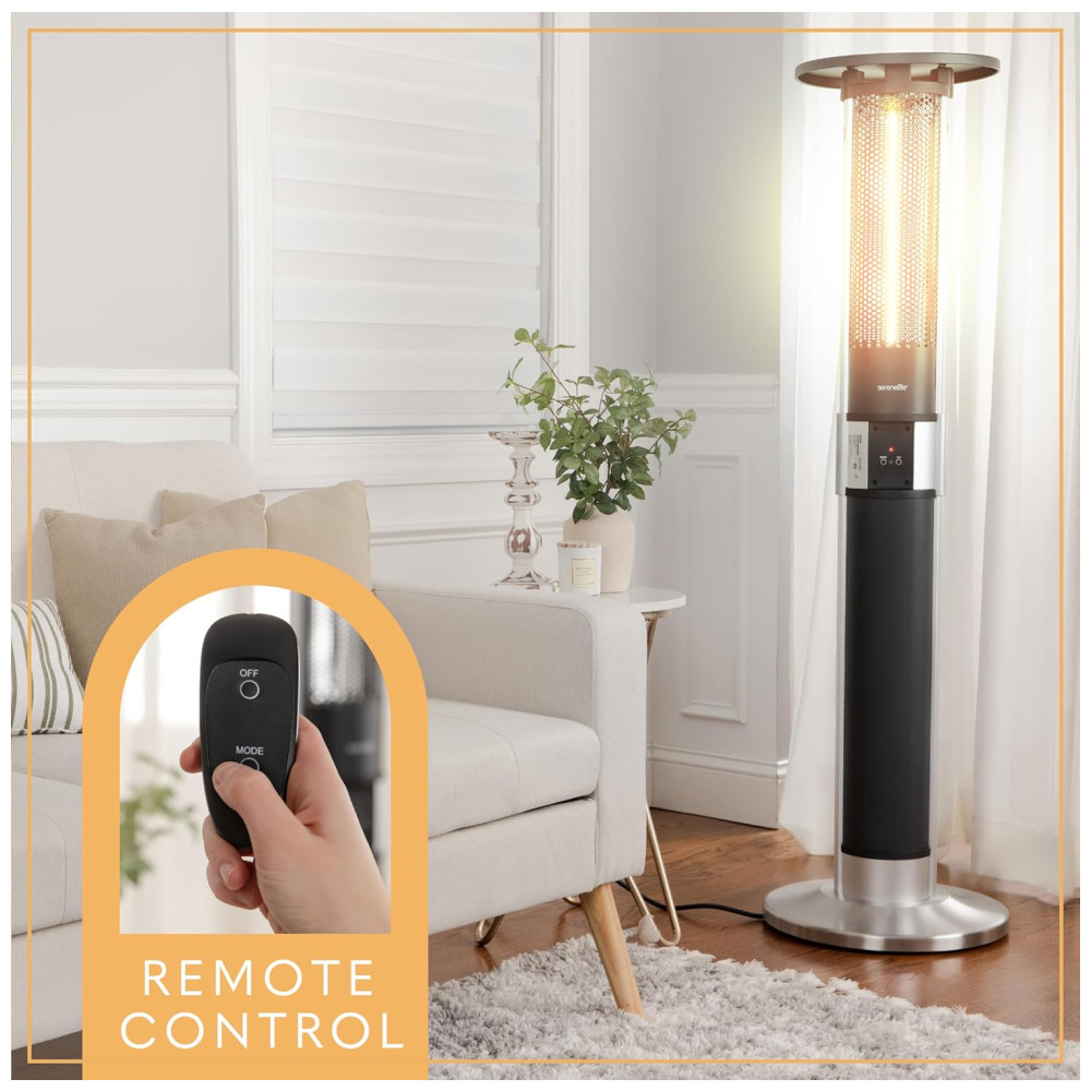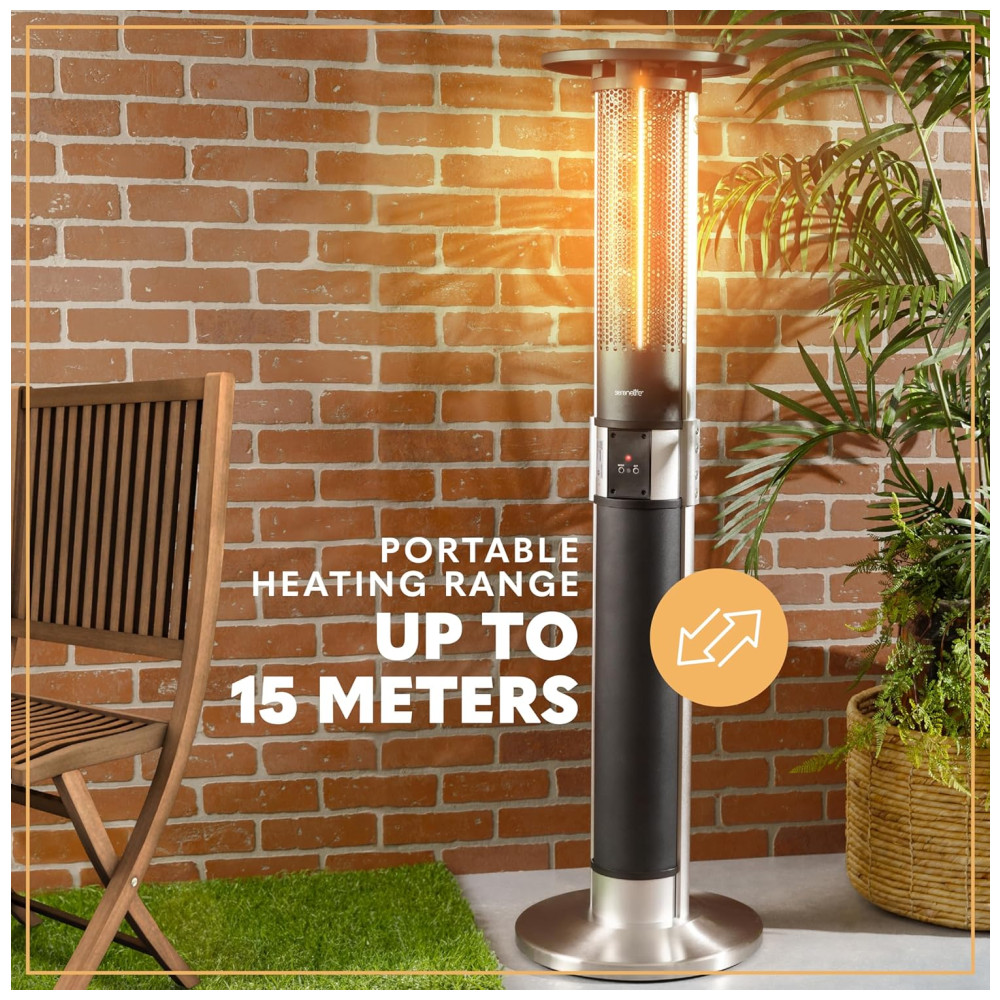 Este aquecedor elétrico de pátio oferece um sistema avançado de aquecimento infravermelho que aquece instantaneamente, semelhante ao sol. Com elementos de aquecimento de fibra de carbono de alta eficiência, ele é capaz de aquecer rapidamente uma área de até 15m2, economizando dinheiro nas contas de energia.