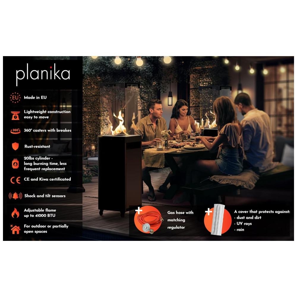 Aquecedor Externo Portátil com Rodas a Gás GLP para Pátio Comercial Planika Preto