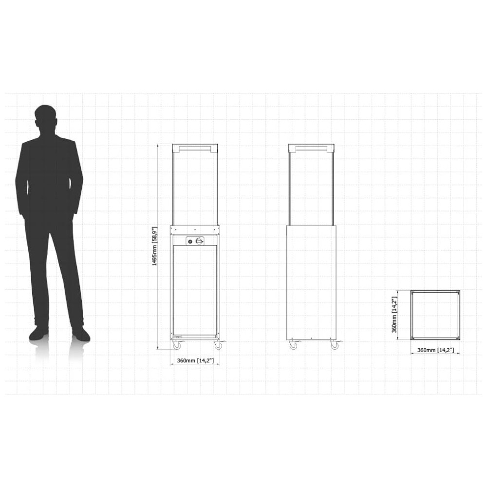 Dimensões: 35,99 cm x 35,99 cm x 150,01 cm