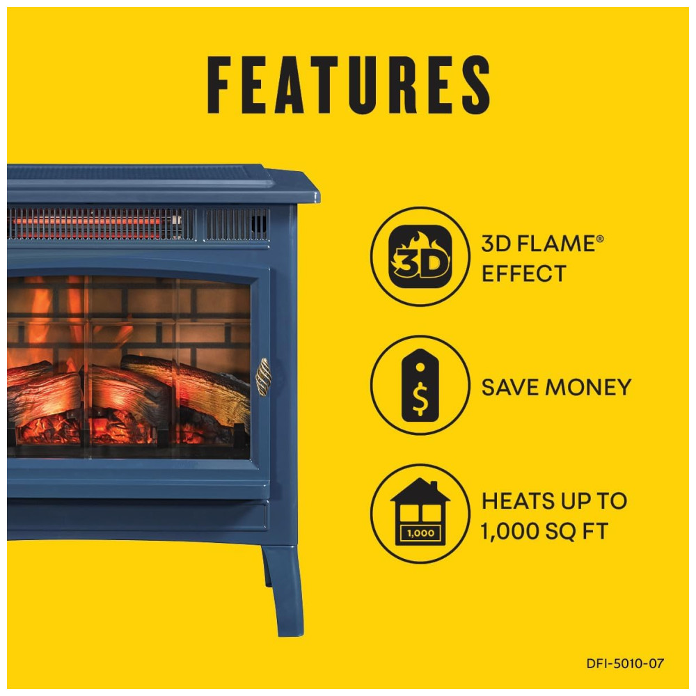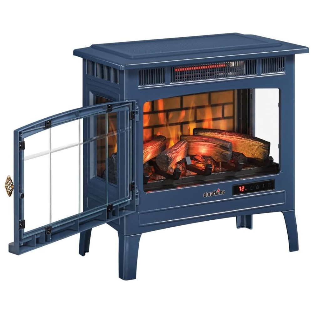 Apresentando a Lareira Elétrica Infravermelha Duraflame Quartz com Efeito de Chama 3D, Azul Marinho: