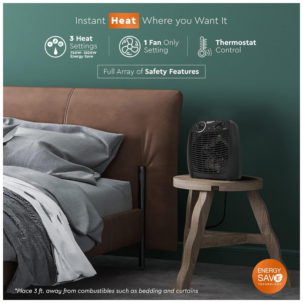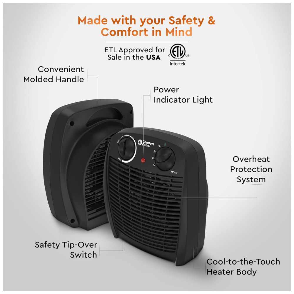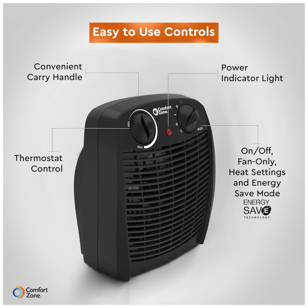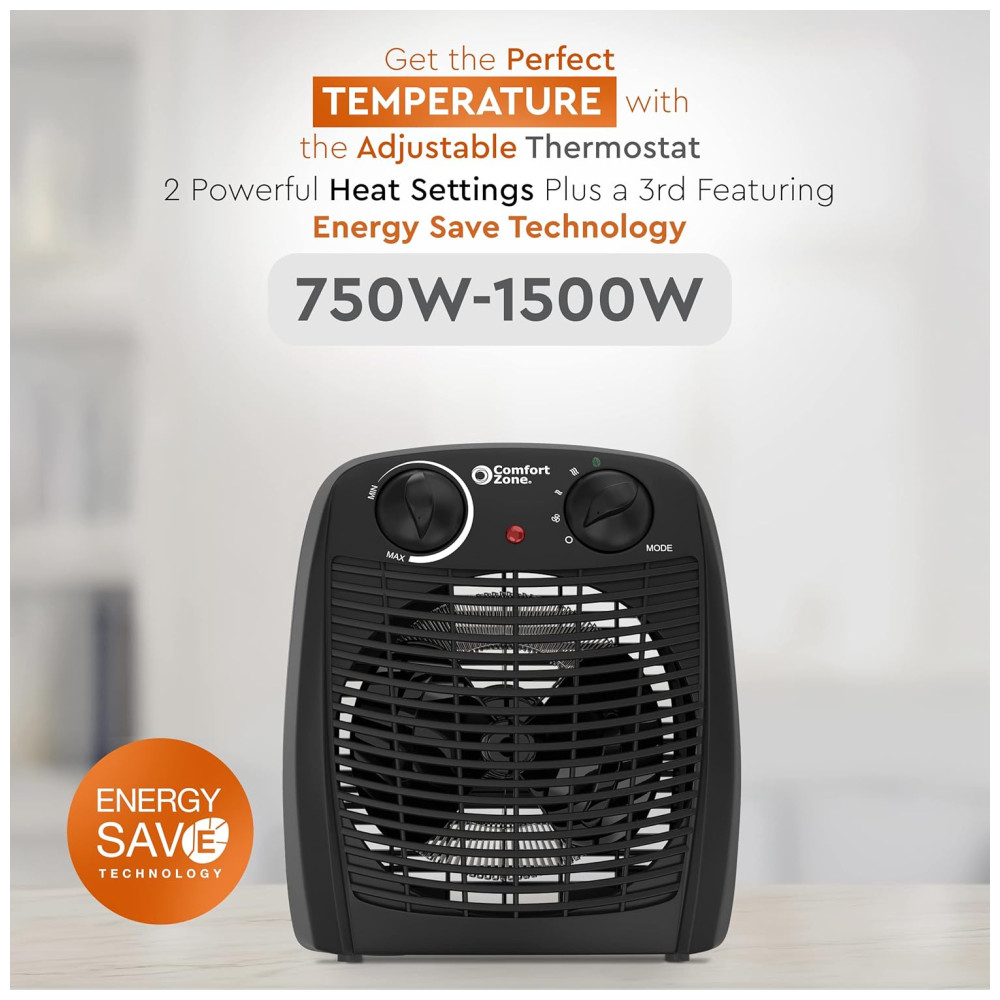Aquecedor Pessoal Comfort Zone CZ45EBK com Termostato Ajustável – Segurança e Conforto para Ambientes Domésticos – Ideal para Casa Quarto e Escritório