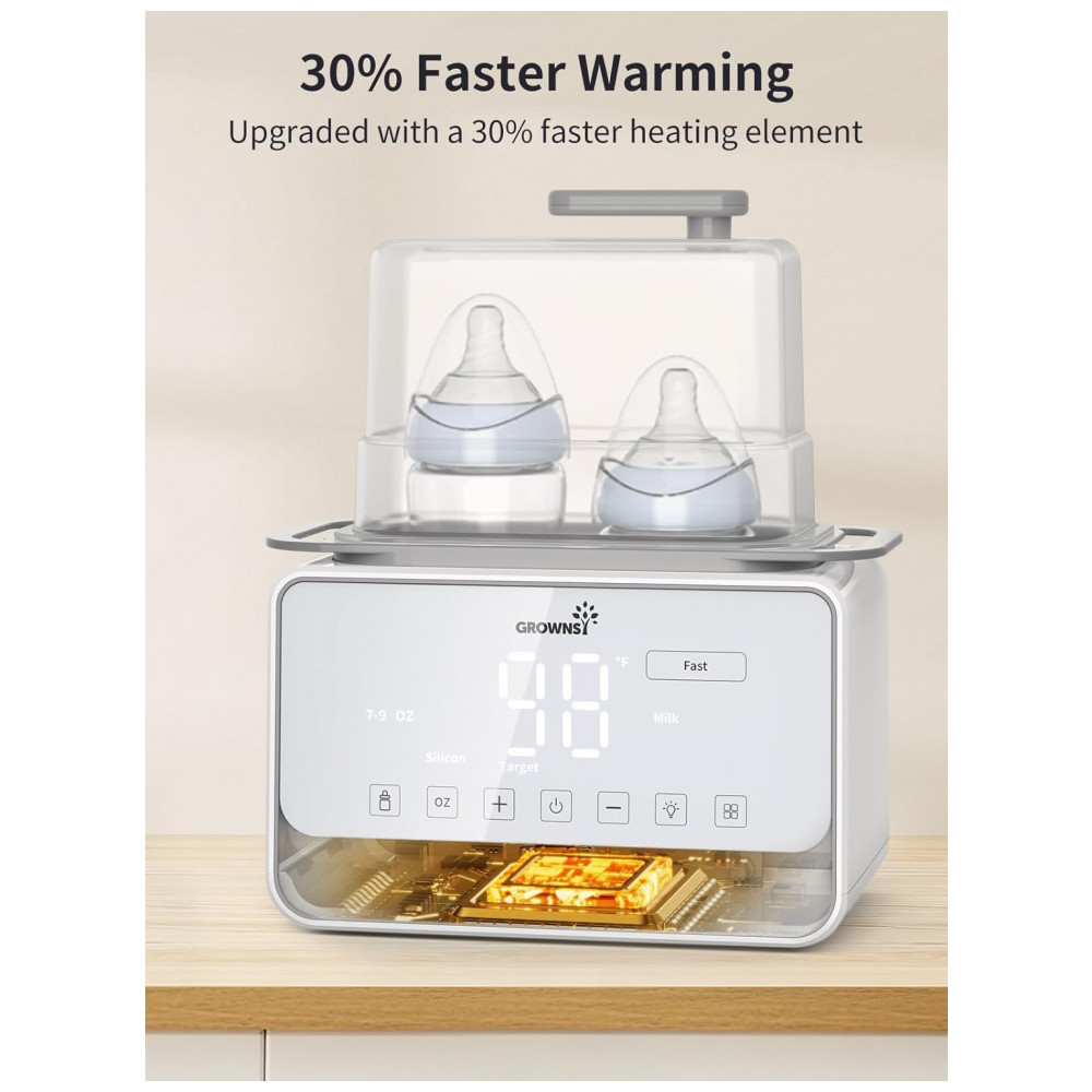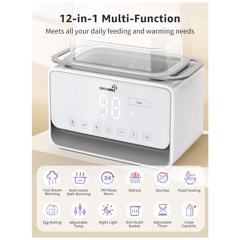 Aquecedor Rápido de Mamadeira GROWSNY 12 em 1 com Modos de Aquecimento a Vapor e Banho-Maria para Leite Materno Fórmula Aquecimento de Alimentos c